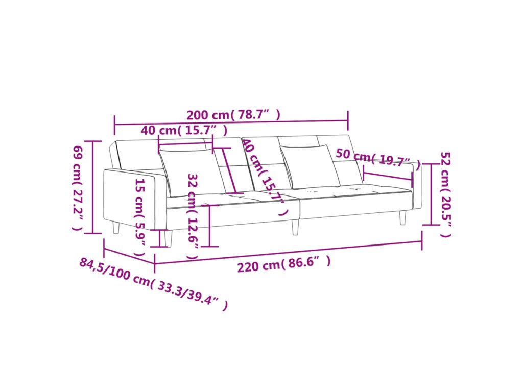 - Celkové rozměry: 220 x 84,5 x 69 cm (D x Š x V)