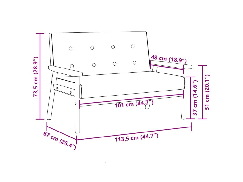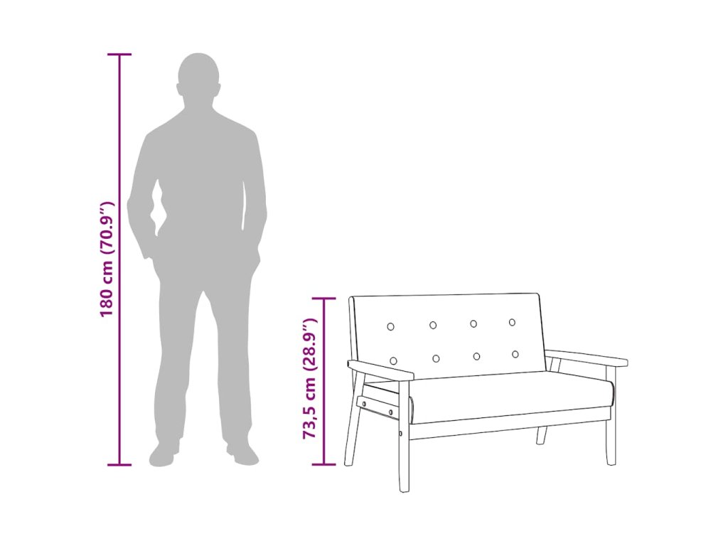 Díky svému vysoce kvalitnímu dřevěnému rámu je tato pohovka stabilní a odolná. Její decentní retro design se bude hodit k jakémukoliv stylu zařízení.