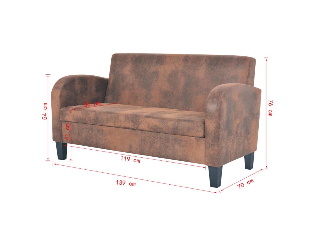 Naše pohodlná 2místná sedačka s umělým semišem má stylový, klasický design a krásně zapadne do každé domácnosti.