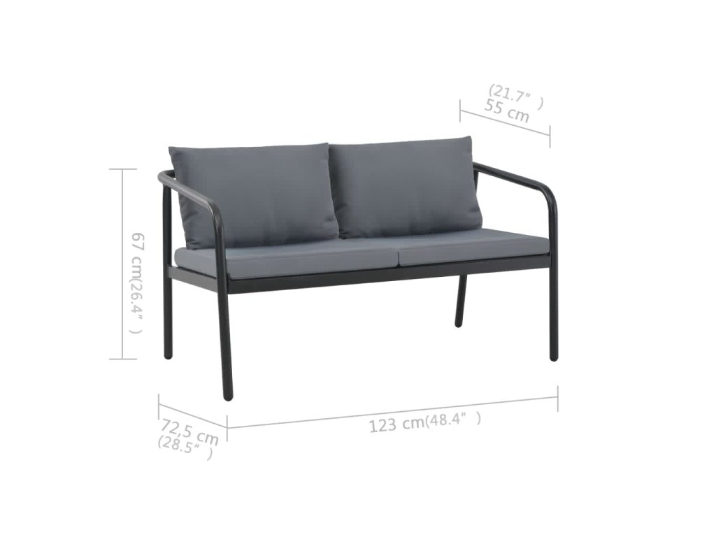 - Barva: tmavě šedý rám a světle šedé podušky