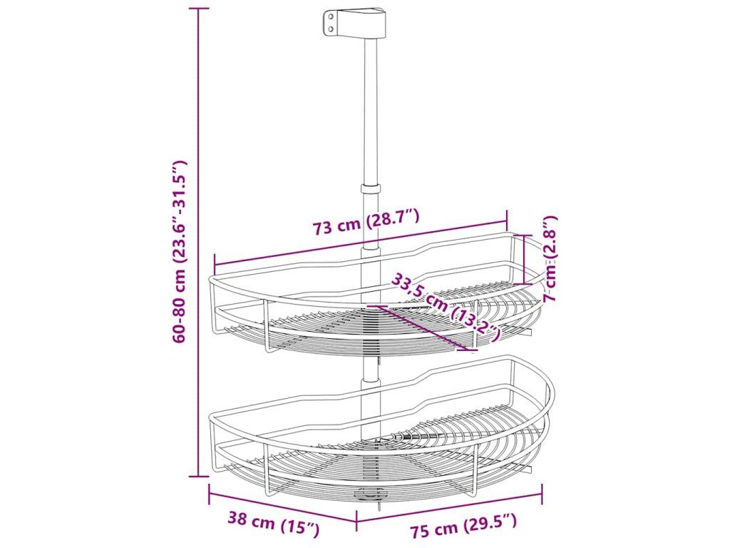 Náš drátěný koš bez námahy nainstalujete do své stávající kuchyňské skříňky za pomoci přiloženého montážního příslušenství. Disponuje 2 poličkami, a představuje proto jednoduché a praktické řešení, jak ve skříni optimalizovat úložný prostor.