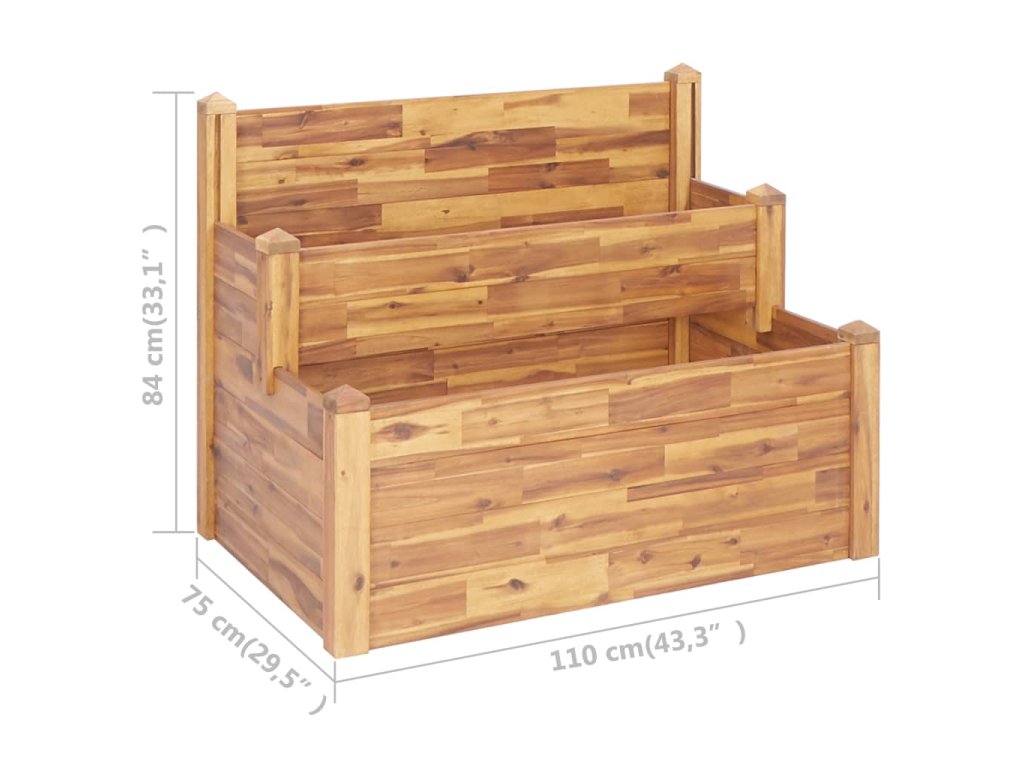 Vyvýšený záhon z masivního akáciového dřeva je velmi robustní a má dlouhou životnost. Povrch truhlíku je ošetřený olejem, aby lépe vynikla jeho teplá rustikální barva. Otevřené dno zaručuje dobré odvádění nadbytečné vody a dostatečný přísun vzduchu ke kořínkům rostlinek.
