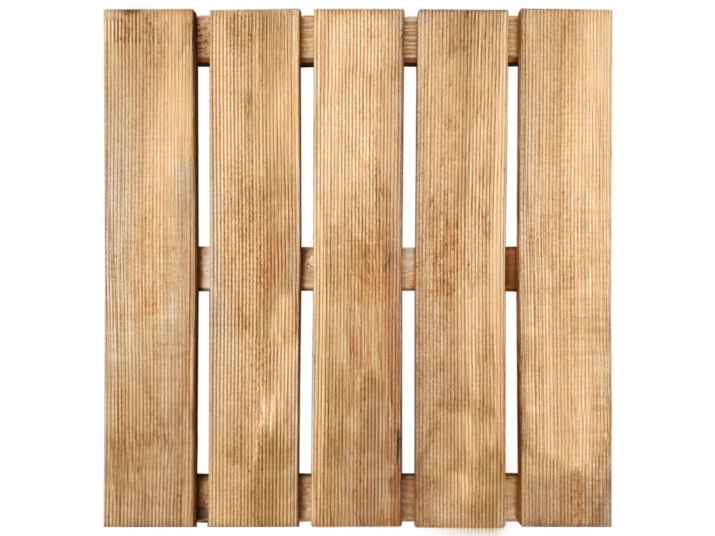 Terasové dlaždice jsou vyrobené z impregnovaného borového dřeva. Jedná se o velmi odolné dřevo, které nepodléhá hnilobě ani vlivům počasí. Překrásná kresba dřeva propůjčuje dlaždicím rustikální kouzlo a jedinečný, neopakovatelný vzhled. Balení obsahuje 30 terasových dlaždic.
