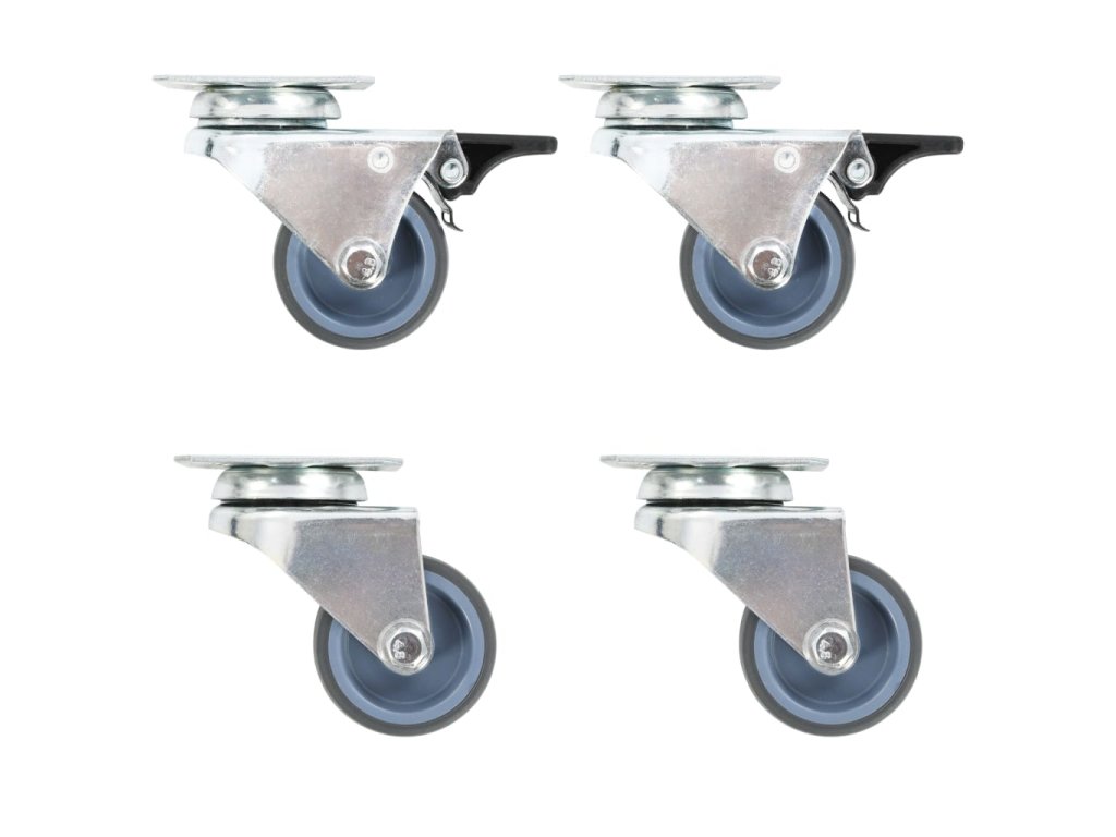 Balení obsahuje 16 otočných koleček a 16 otočných koleček s brzdou
