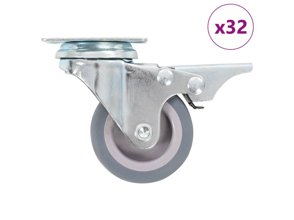 - Balení obsahuje 32 otočných koleček, z nichž polovina je s brzdou.