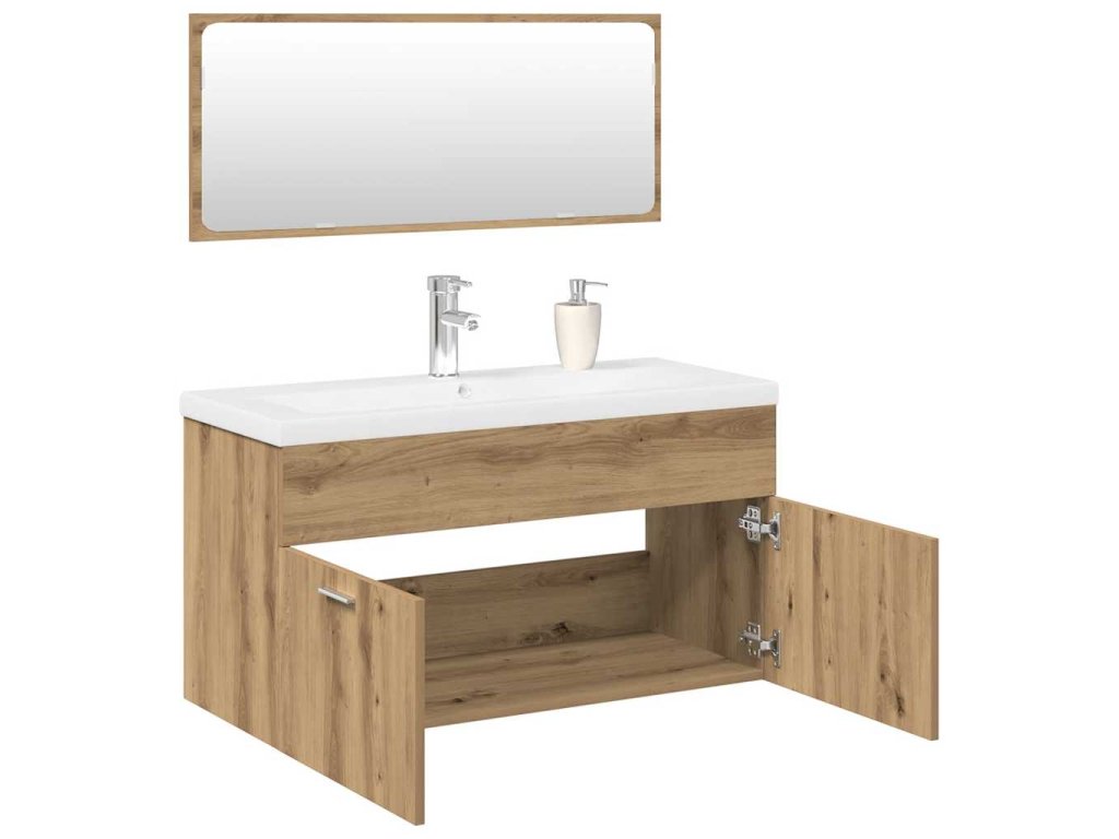 - Pevný materiál: Skříňka pod umyvadlo je vyrobena z kompozitního dřeva, které je mimořádně kvalitní s hladkým povrchem a zároveň se vyznačuje pevností, stabilitou a odolností proti vlhkosti.