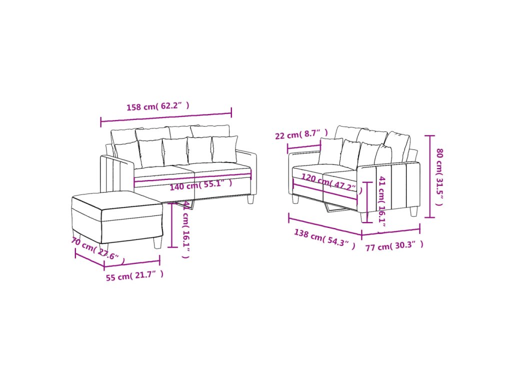 Tato sedací souprava je skvělým místem pro povídání, čtení, sledování televize nebo jen tak k relaxaci. Bude ústředním bodem vašeho interiéru.