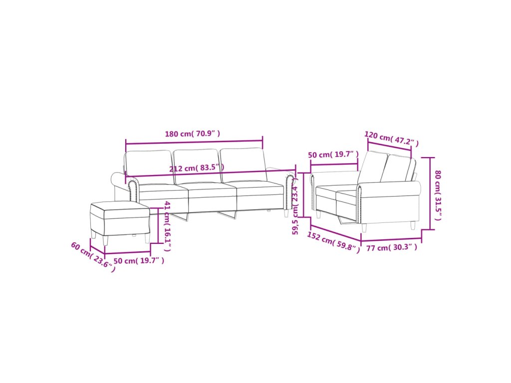 - Celkové rozměry: 212 x 77 x 80 cm (Š x H x V)