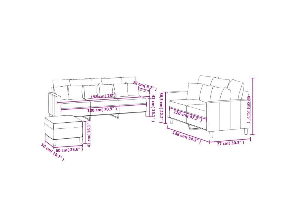 - Pevný a stabilní rám: Rám z kovu a překližky této sedací soupravy zajišťuje pevnost a stabilitu.