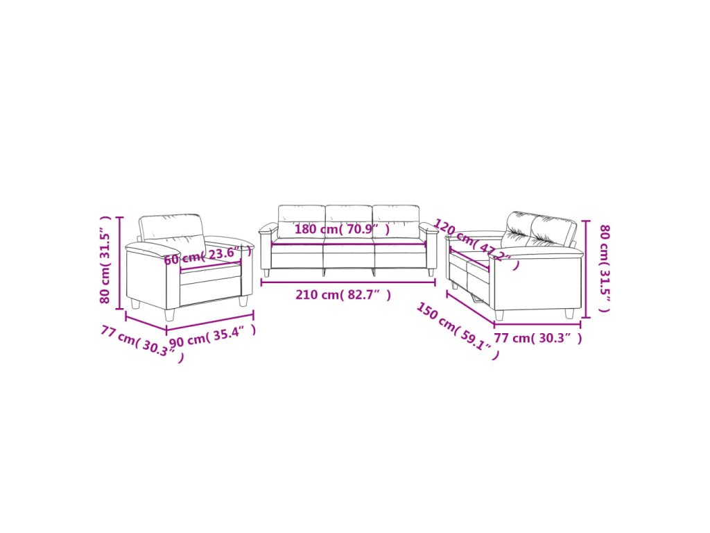 - Celkové rozměry: 210 x 77 x 80 cm (Š x H x V)