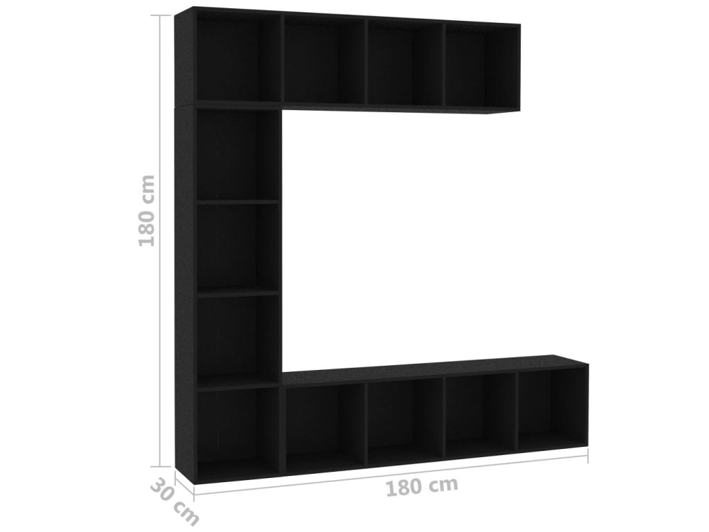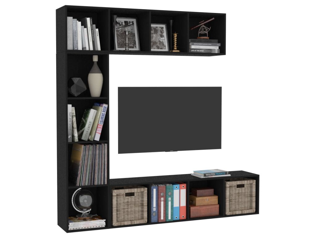 Tento set nábytku kombinuje 1 televizní skříňku, 1 polici na knihy a 1 nástěnnou skříňku a je navržený s 12 přihrádkami. Nabízí tudíž dostatek úložného prostoru pro přehledné uspořádání časopisů, knih, DVD a multimediálních zařízení na dosah ruky.
