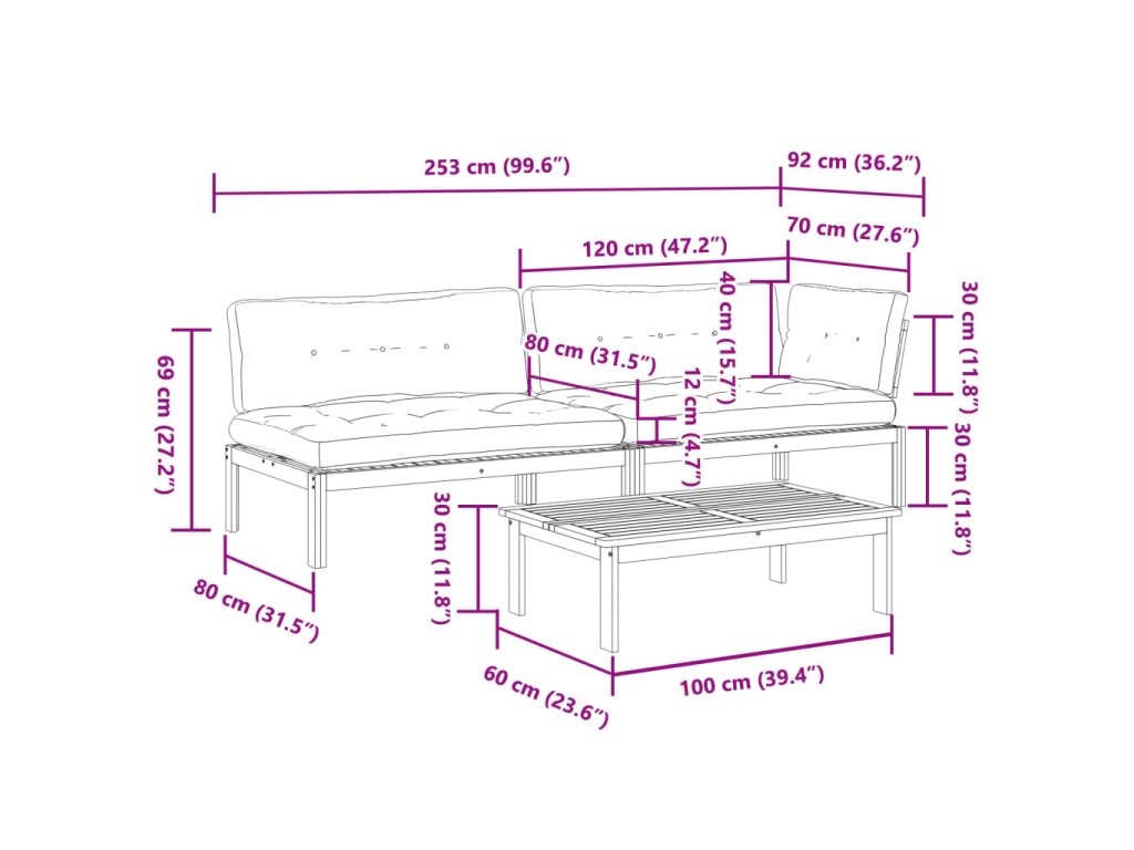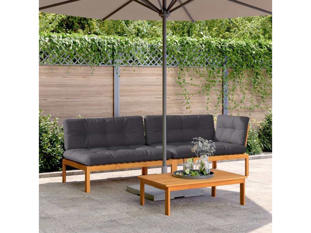 Tato dřevěná paletová sedací souprava s lamelovou konstrukcí bude skvělým doplňkem vaší zahrady, dvorku nebo terasy, kde si budete moct užít příjemné chvíle s rodinou či přáteli.