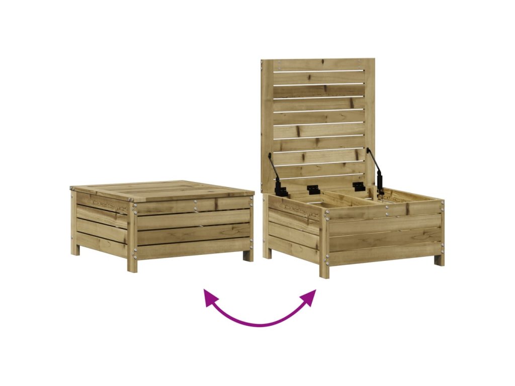 - Všestranné použití: Venkovní taburet s víkem může sloužit nejen k sezení nebo k vyložení nohou, ale také jako konferenční stolek, kam si můžete odložit vaše nápoje nebo občerstvení. Zahradní nábytek je opatřen úložným prostorem pod sedákem.
