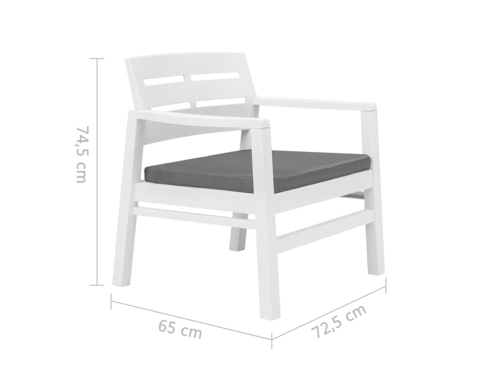 Zahradní nábytek je vhodný pro venkovní použití, a to díky pevnému a zároveň lehkému plastu, který je trvanlivý, odolný proti povětrnostním vlivům a navíc se snadno čistí. Na pohodlí židlím přidávají i polyesterové podušky na sedáky. Sestavení sady zahradního nábytku je snadné.