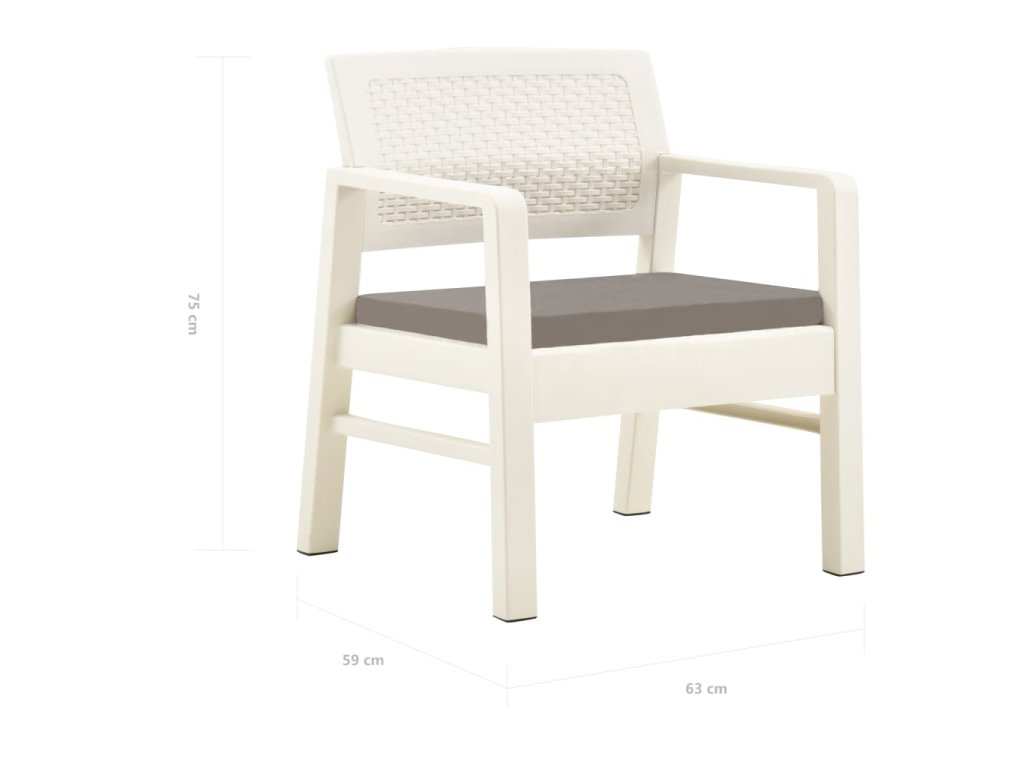 Zahradní nábytek je vhodný pro venkovní použití, a to díky pevnému a zároveň lehkému plastu, který je trvanlivý, odolný proti povětrnostním vlivům a navíc se snadno čistí. Na pohodlí židlím přidávají i polyesterové podušky na sedáky. Sestavení sady zahradního nábytku je snadné.