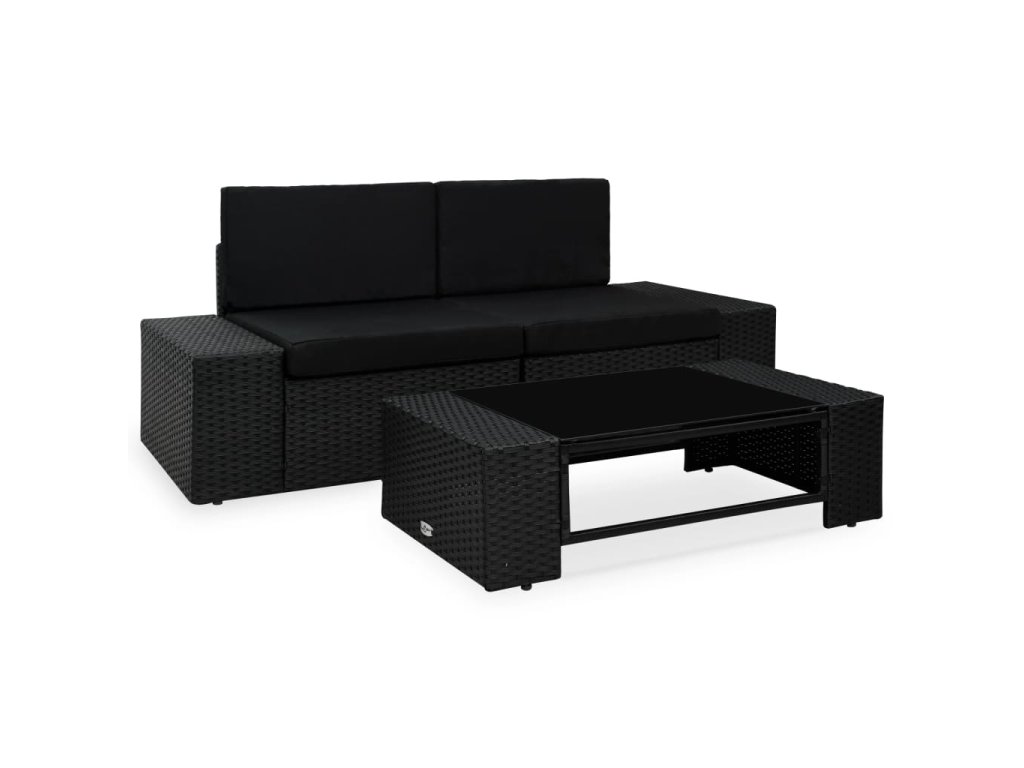 Souprava je vyrobená z PE ratanu, který výborně vzdoruje klimatickým vlivům, je odolný vůči opotřebení a vhodný pro každodenní používání. Navíc se snadno čistí. Všechny díly jsou zpevněné rámem z práškově lakované oceli, takže jsou mimořádně odolné. Mají také nízkou hmotnost a modulární design, což znamená, že jsou zcela flexibilní a lze je bez námahy přesouvat a přizpůsobovat každému prostředí. Tlusté odnímatelné podušky vám poskytnou maximální pohodlí. Na konferenční stolek s deskou z tvrzeného skla si můžete odkládat knížky, časopisy a čaj, budete je tedy mít při odpočinku vždy hezky po ruce. Soupravu je možné kombinovat s dalšími modulárními díly, které najdete v rozbalovacím menu. Můžete si tak vytvořit zahradní posezení podle vašich představ! V 9 posledních obrázcích najdete příklady možných kombinací.