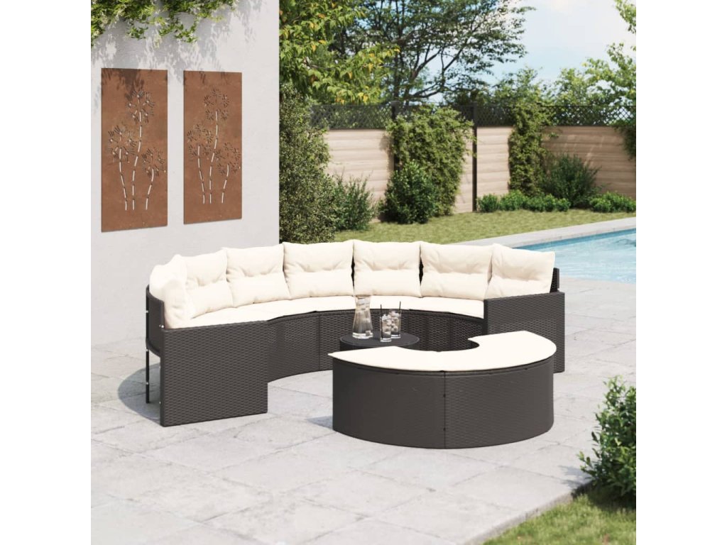 Tato půlkruhová zahradní sedací souprava je dokonalým doplňkem vaší zahrady, terasy nebo dvorku a poskytne vám pohodlné a příjemné místo, kde si můžete povídat s rodinou a přáteli nebo jen tak odpočívat a užívat si pobyt venku.