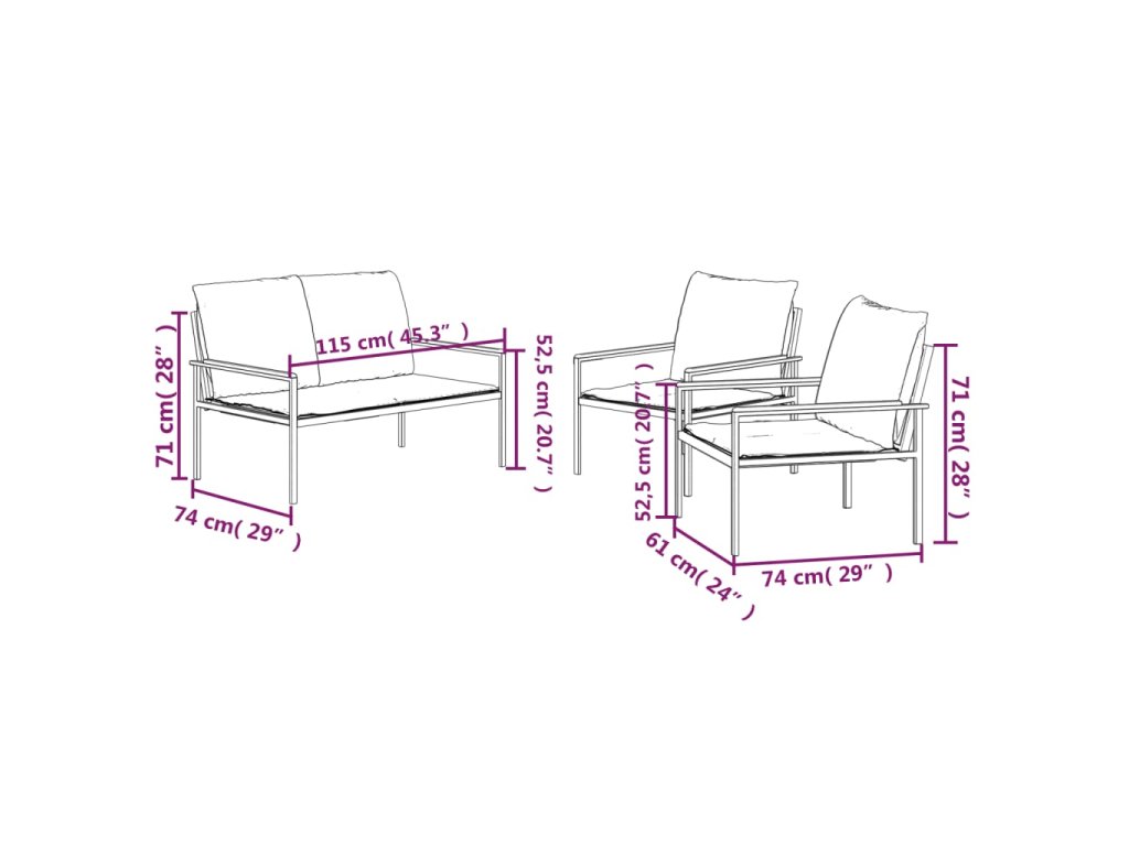 - Robustní a stabilní rám: Jelikož má ocelové rámy, je tato sedací souprava robustní a stabilní pro každodenní venkovní použití.