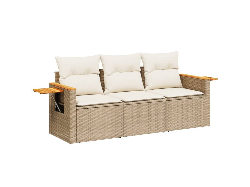 - Materiál: PE ratan, práškově lakovaná ocel, masivní akáciové dřevo s olejovou povrchovou úpravou