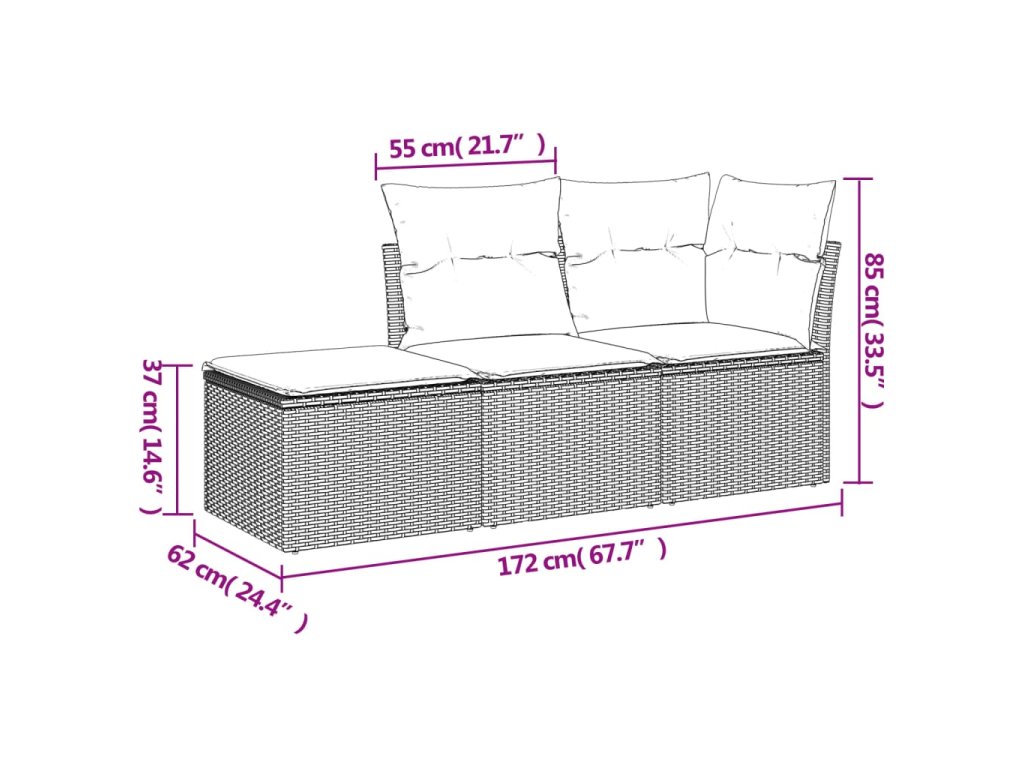 Tato zahradní sedací souprava je dokonalým doplňkem vaší zahrady, terasy nebo dvorku a poskytne vám pohodlné a příjemné místo, kde si můžete povídat s rodinou a přáteli nebo jen tak odpočívat a užívat si pobyt venku.