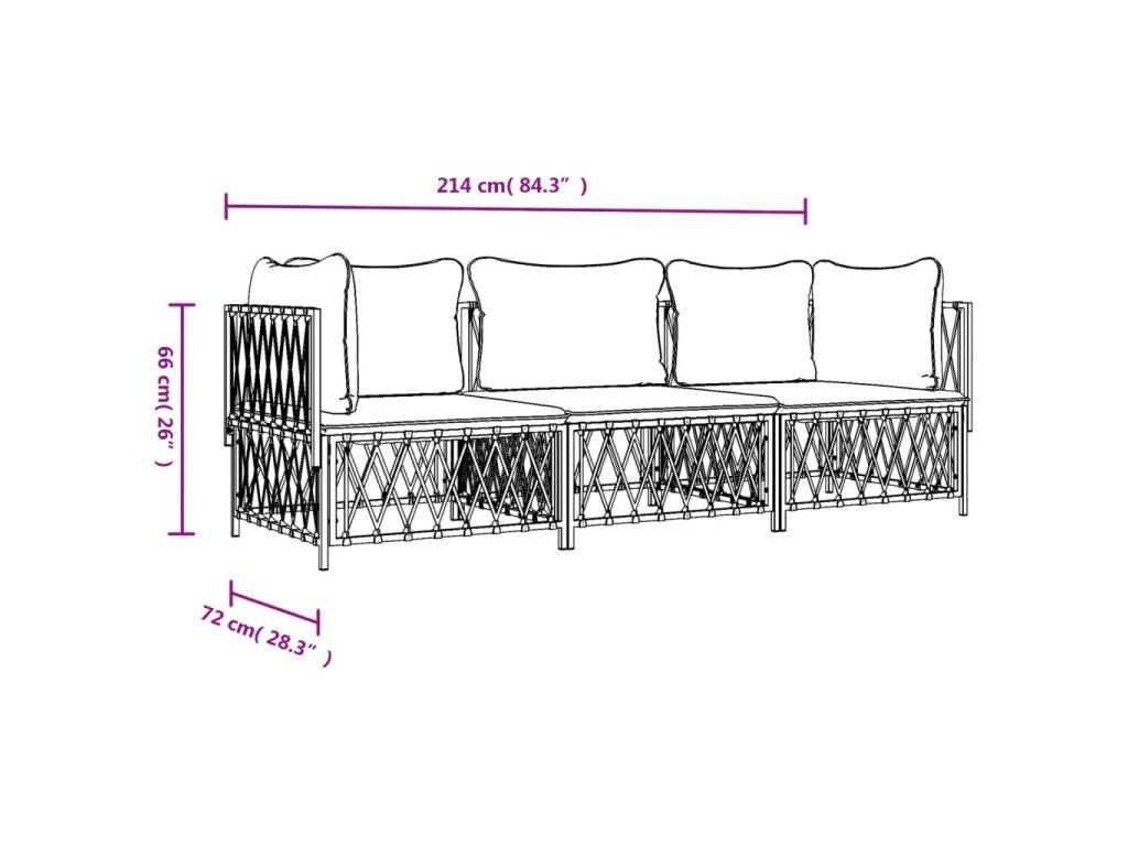 - Robustní rám: Jelikož má práškově lakovaný ocelový rám, je tato sedací souprava robustní a stabilní pro každodenní venkovní použití.