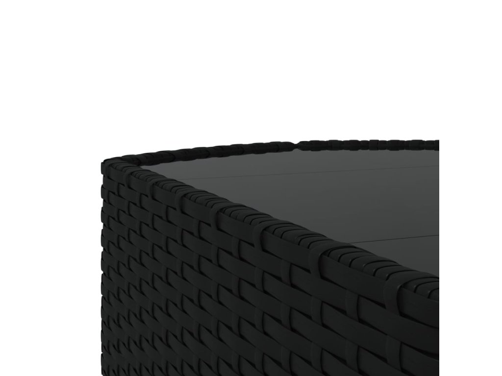 - Materiál: PE ratan, práškově lakovaná ocel, tkanina (100% polyester), tvrzené sklo