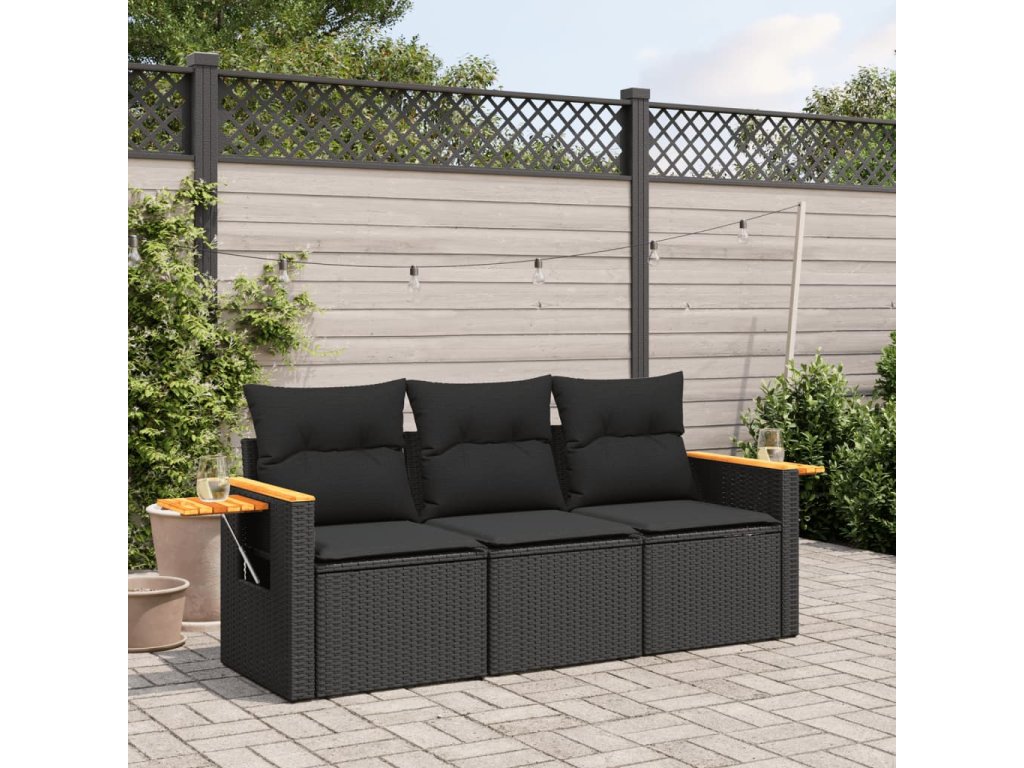 - Materiál: PE ratan, práškově lakovaná ocel, masivní akáciové dřevo s olejovou povrchovou úpravou