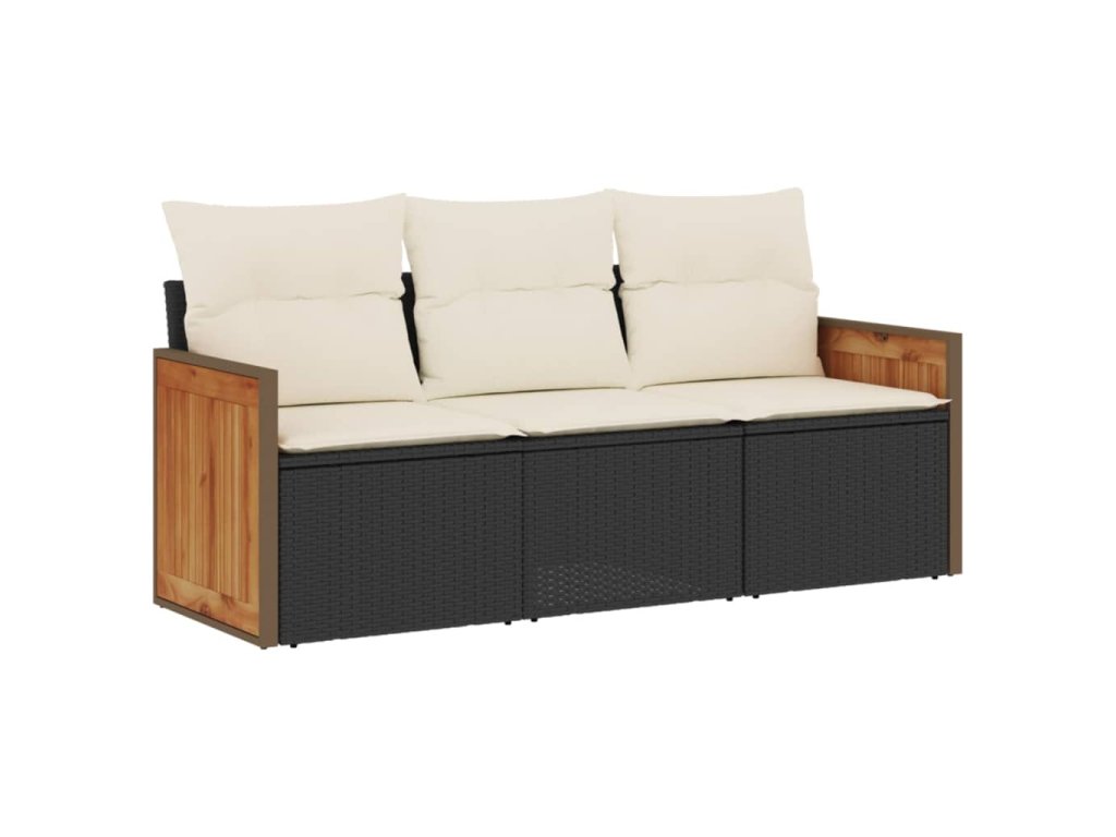 - Materiál: PE ratan, práškově lakovaná ocel, masivní akáciové dřevo s olejovou povrchovou úpravou