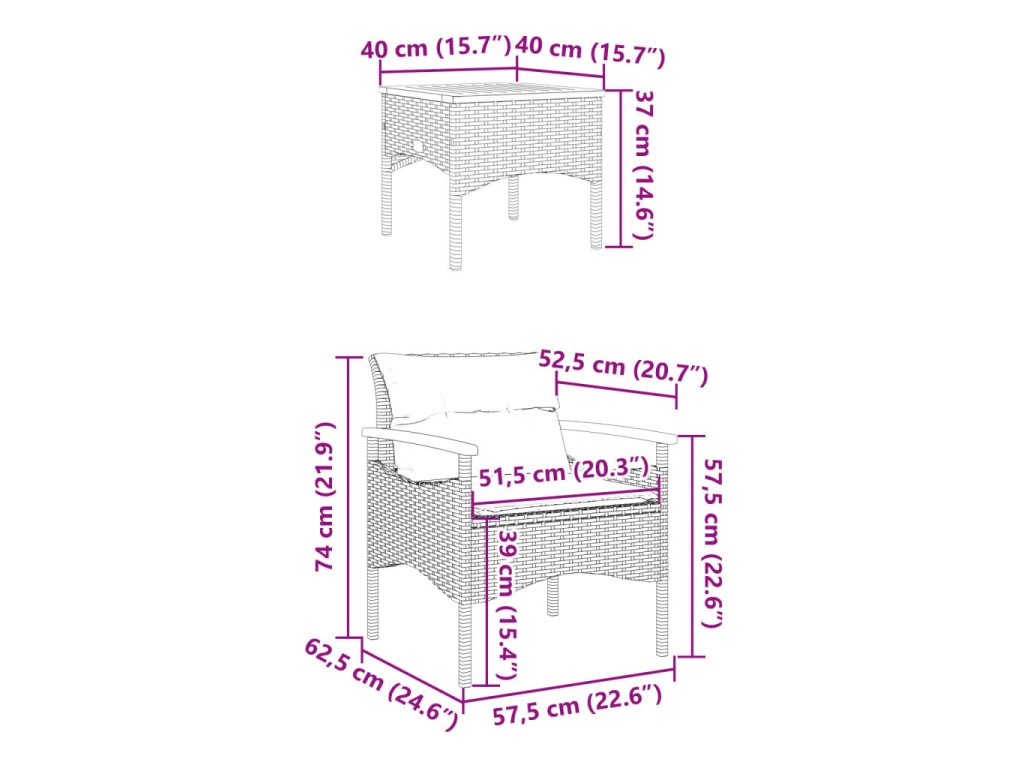 - Rozměry stolku: 40 x 40 x 37 cm (D x Š x V)