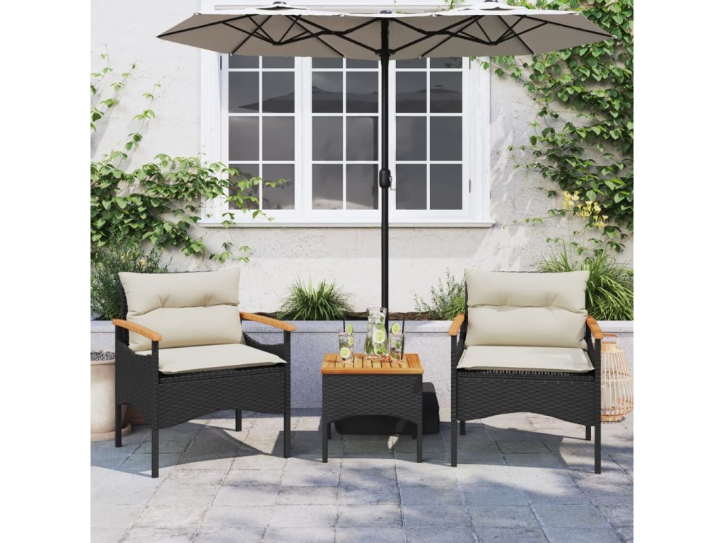 - Materiál: PE ratan, práškově lakovaná ocel, masivní akáciové dřevo s olejovou povrchovou úpravou