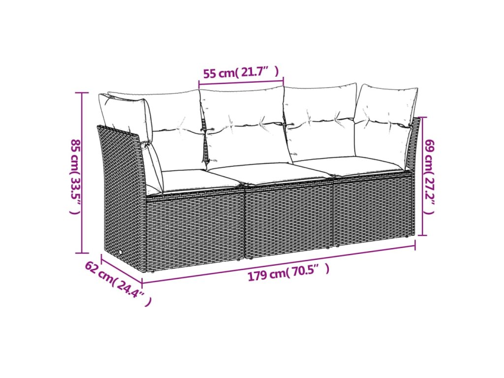 Tato zahradní sedací souprava je dokonalým doplňkem vaší zahrady, terasy nebo dvorku a poskytne vám pohodlné a příjemné místo, kde si můžete povídat s rodinou a přáteli nebo jen tak odpočívat a užívat si pobyt venku.
