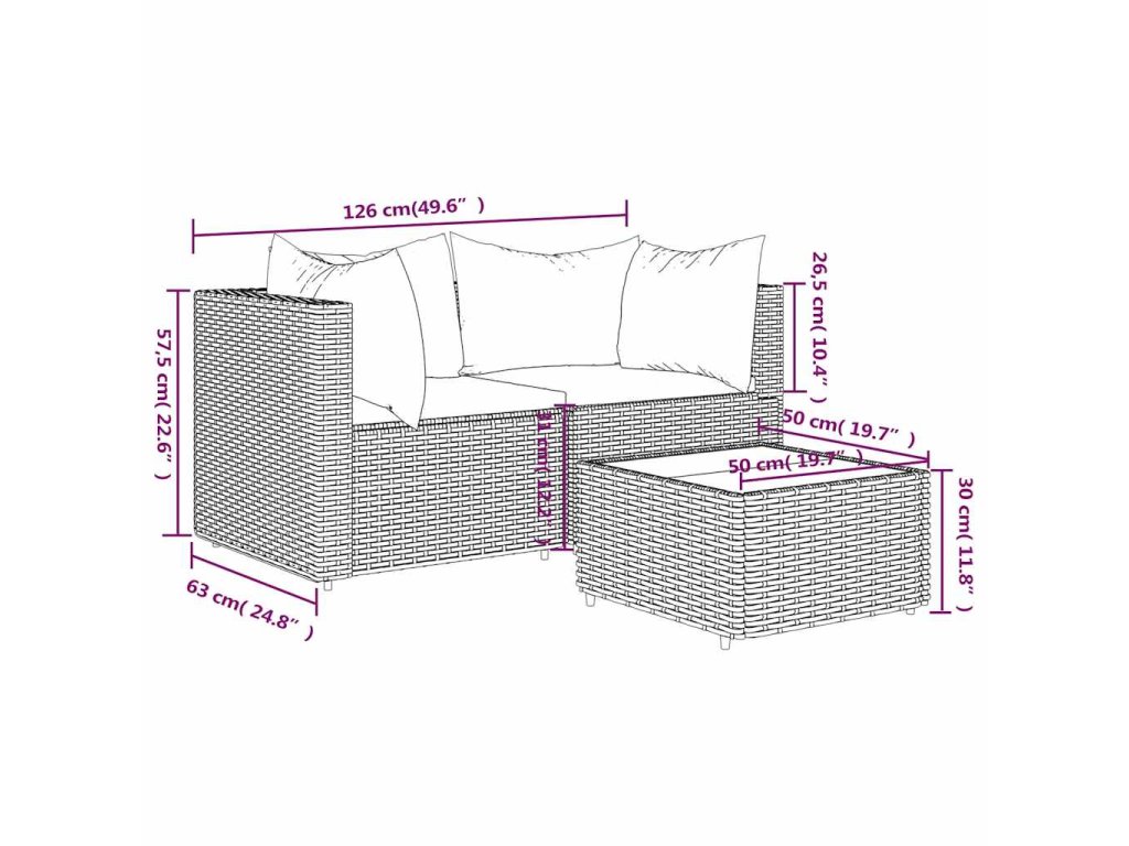 - Materiál: PE ratan, práškově lakovaná ocel, tkanina (100% polyester), tvrzené sklo