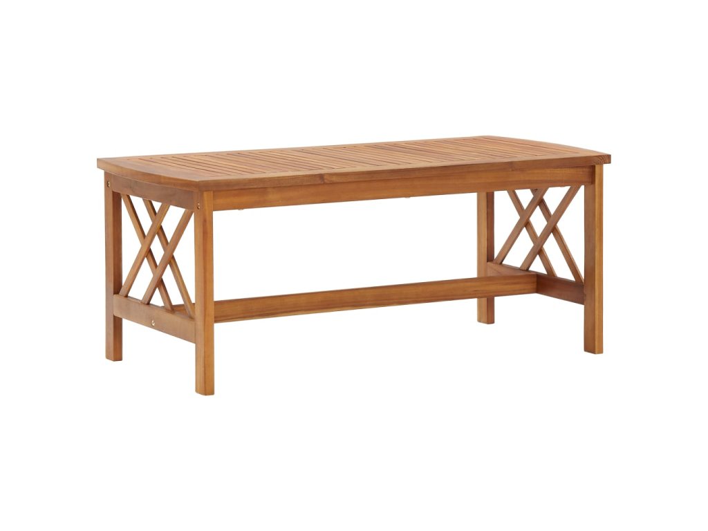 Set zahradního nábytku je zhotovený z masivního akáciového dřeva s olejovou úpravou, je stabilní a má dlouhou životnost. Tlusté podušky na sedák a opěradlo poskytují měkké posezení. Konferenční stolek s masivní dřevěnou stolní deskou s lamelovým designem poslouží jako perfektní odkládací plocha pro vaše občerstvení, mísy s ovocem, dekorativní předměty a další nezbytnosti. Na lavičce s lehce zaobleným opěradlem a loketními opěrkami se velmi pohodlně sedí.