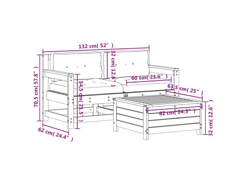 - Rozměry zahradní podnožky: 62 x 63,5 x 32 cm (Š x H x V)