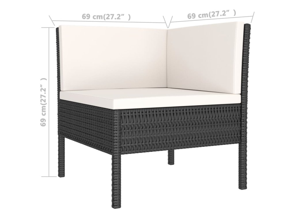 - Rozměry rohové pohovky: 69 x 69 x 69 cm (Š x H x V)