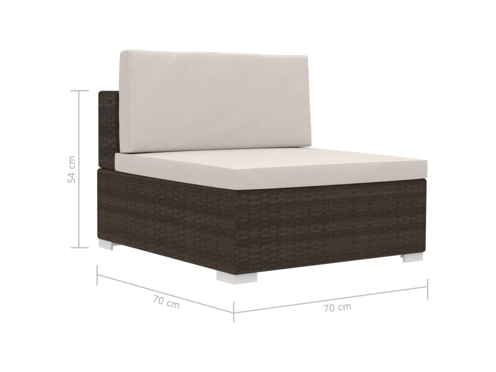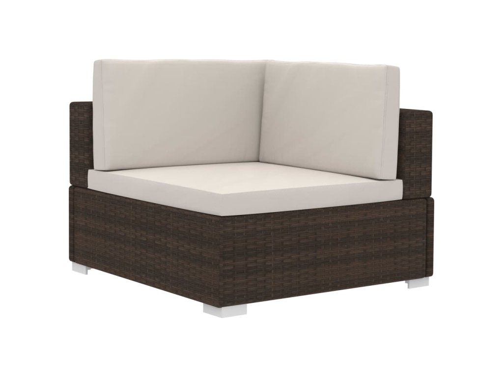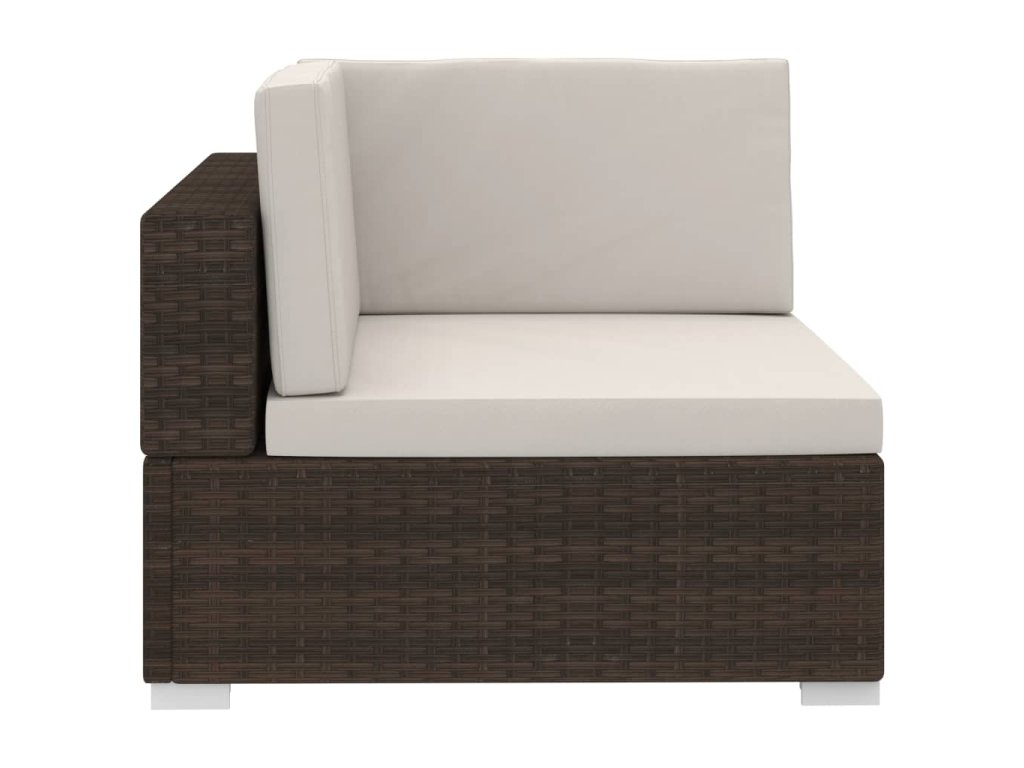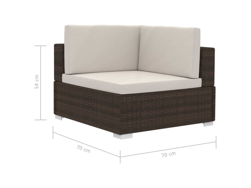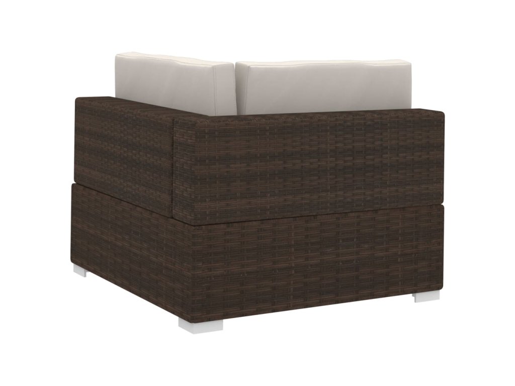Tato polyratanová sedací souprava sestává ze 2 rohových pohovek, 1 středové pohovky, 5 polštářů za záda a 3 podušek na sedáky. Pomůže vám vytvořit stylové posezení na vaší zahradě či terase.
