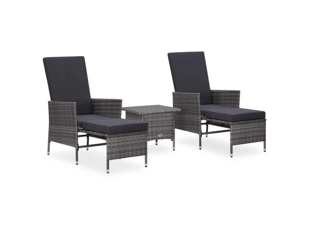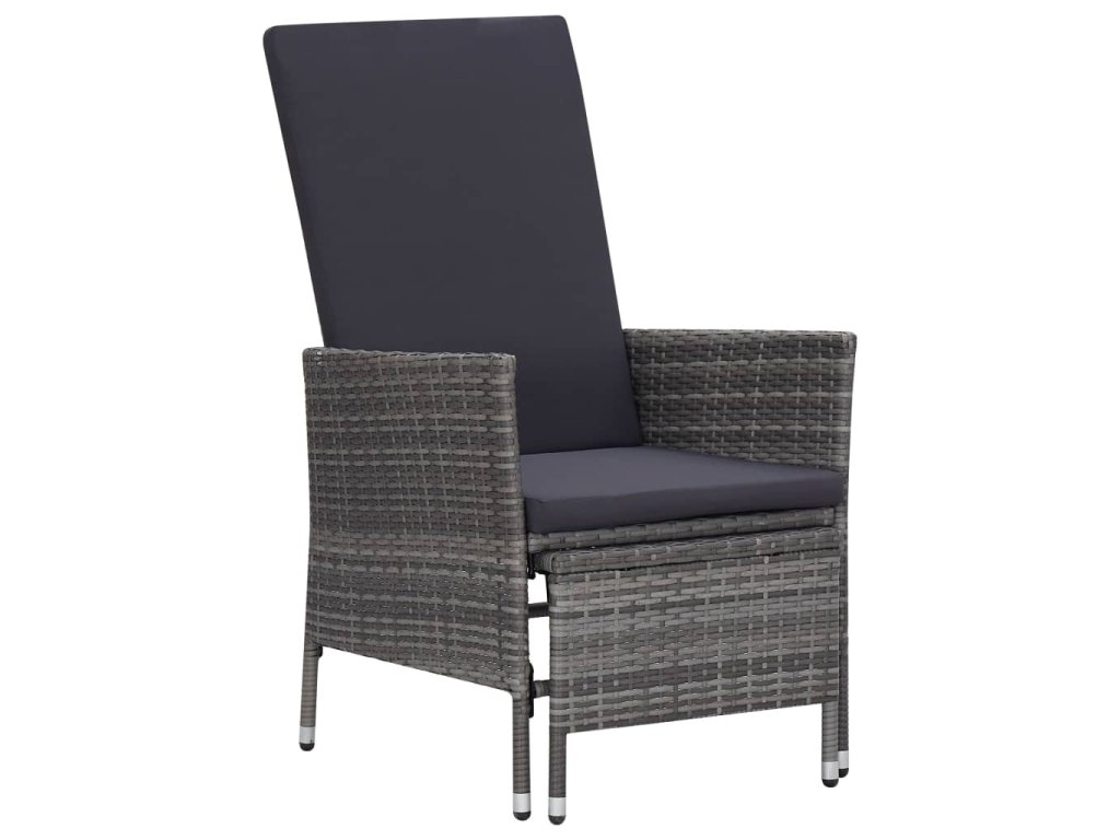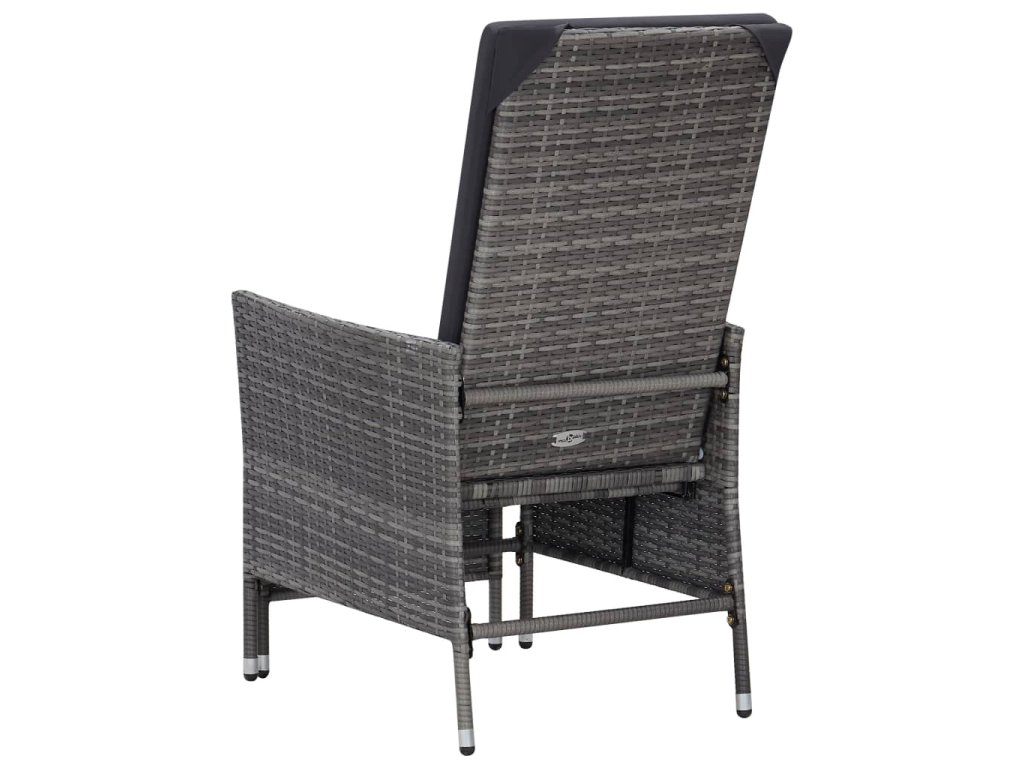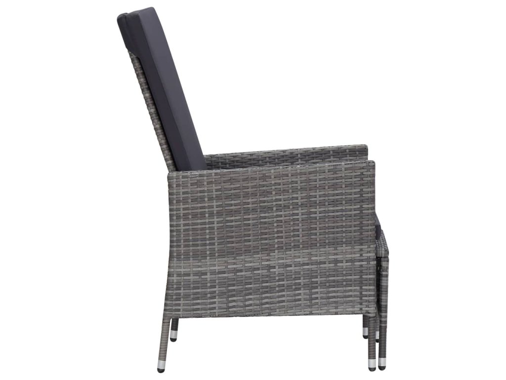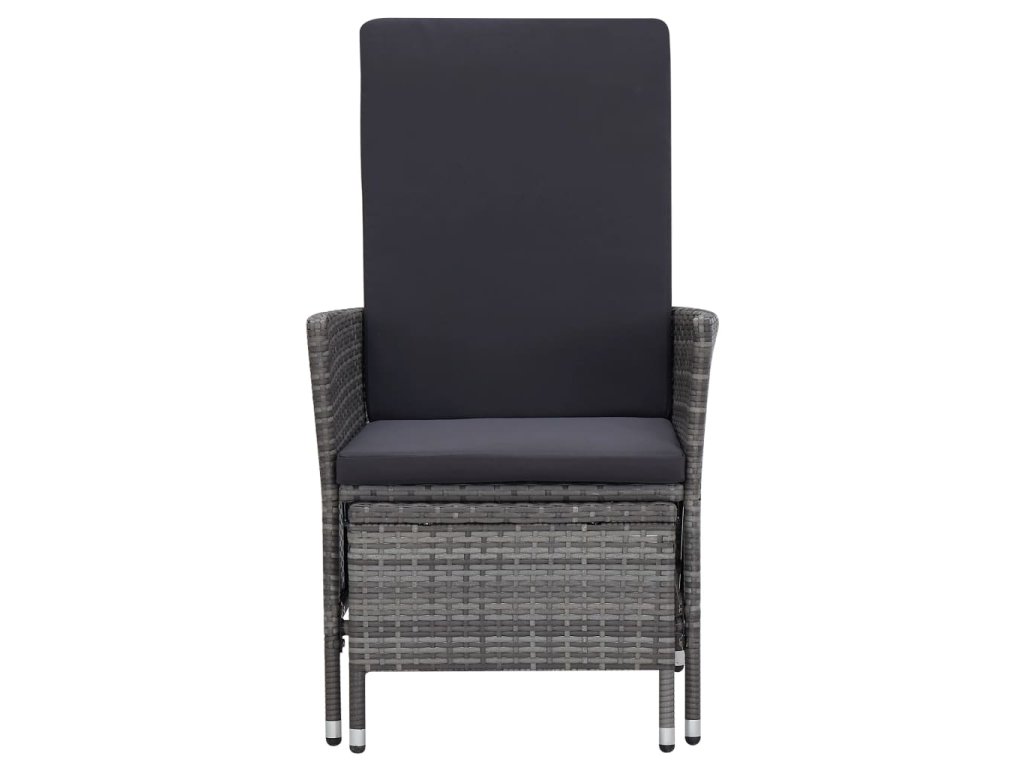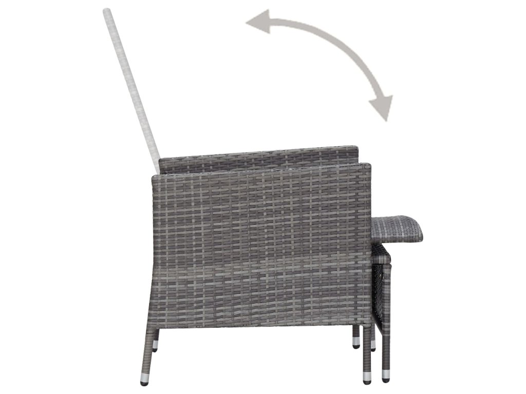 Zahradní sedací souprava má práškově lakovaný ocelový rám, potažený PE ratanem, je tedy robustní a snadno se čistí. Na silně polstrovaných poduškách se příjemně a pohodlně odpočívá. Potahy na poduškách mají zip, takže je můžete snadno sejmout a vyprat. Nohy si můžete natáhnout na podnožky, které se dají zastrčit pod židli, když je právě nepoužíváte. Opěradlo lze také sklopit a ochránit sedák před znečištěním. Navíc se vyznačuje lehkou konstrukcí z PE ratanu, dá se tedy snadno přemisťovat.