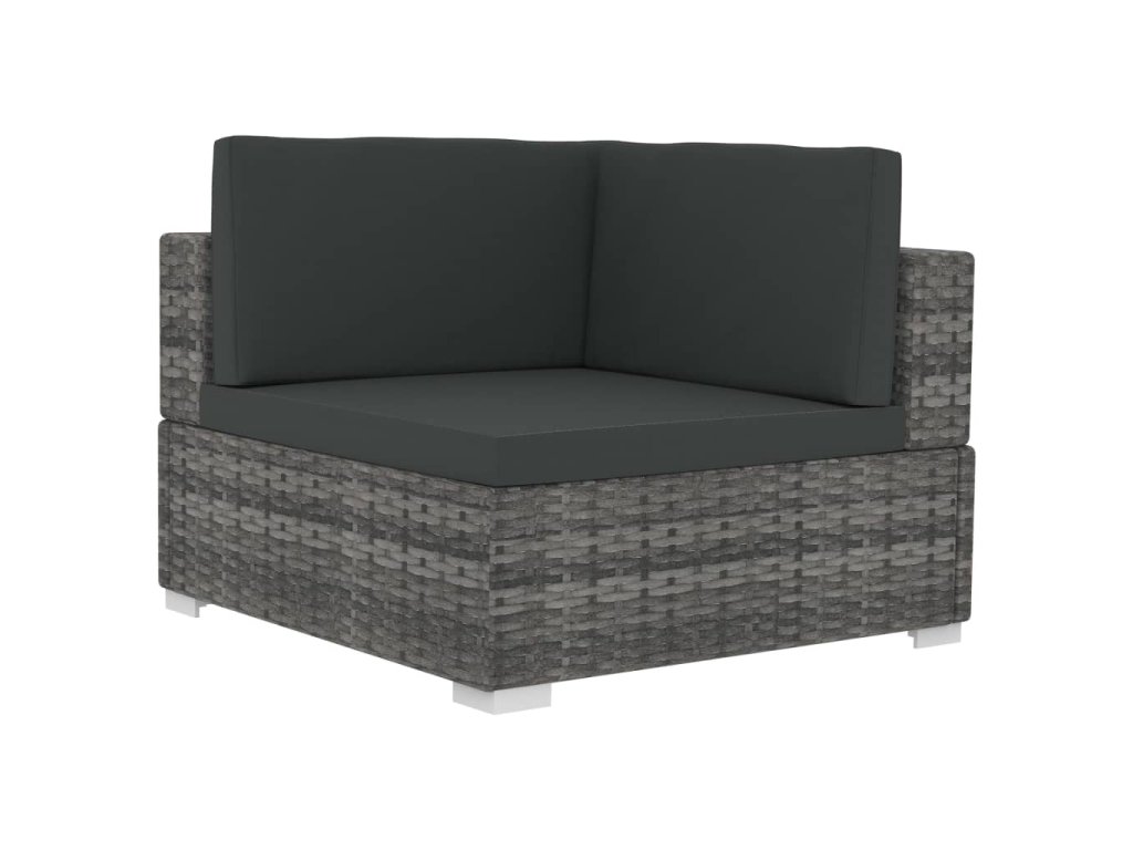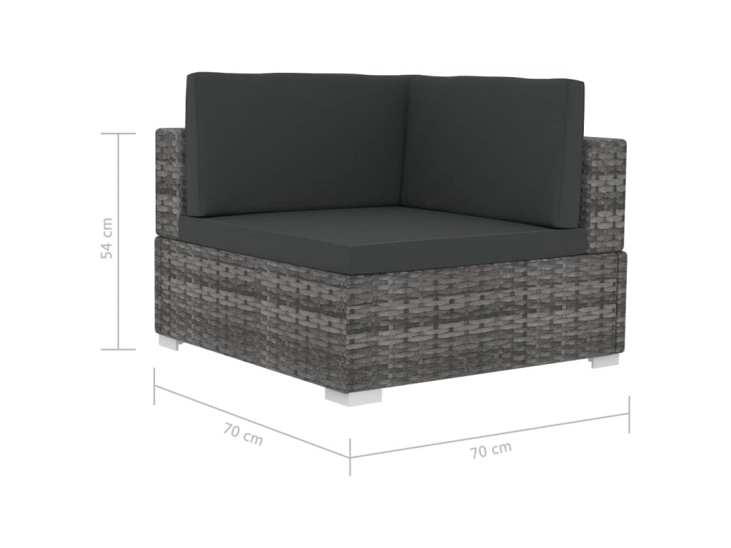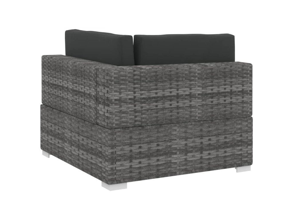 Tato polyratanová sedací souprava sestává ze 2 rohových pohovek, 1 středové pohovky, 5 polštářů za záda a 3 podušek na sedáky. Pomůže vám vytvořit stylové posezení na vaší zahradě či terase.