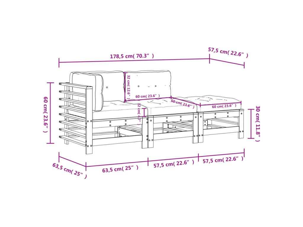 - Rozměry středové pohovky: 57,5 x 63,5 x 60 cm (D x Š x V)