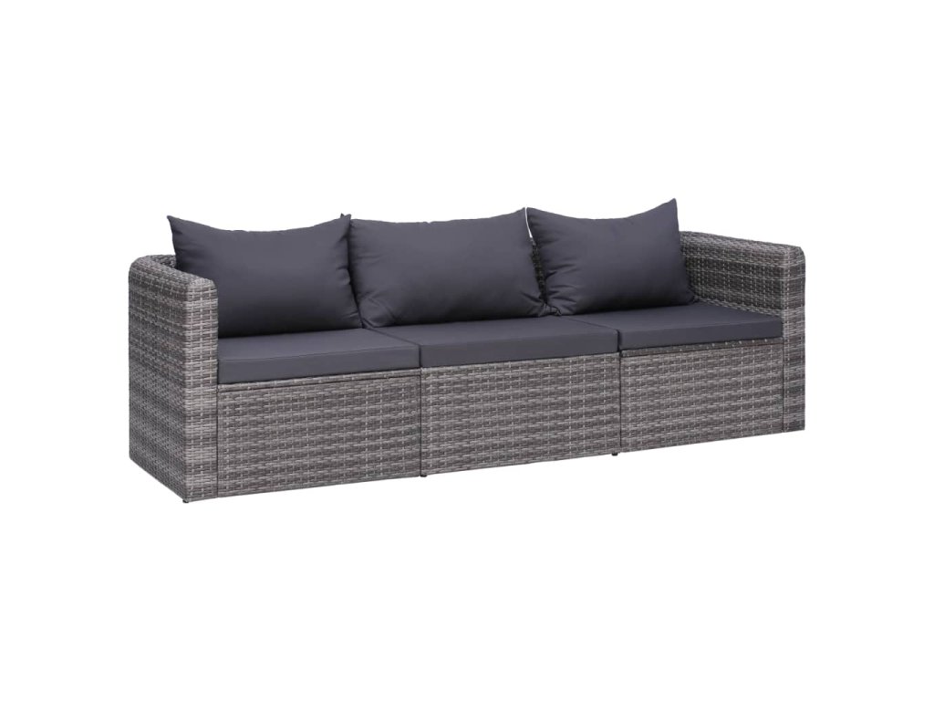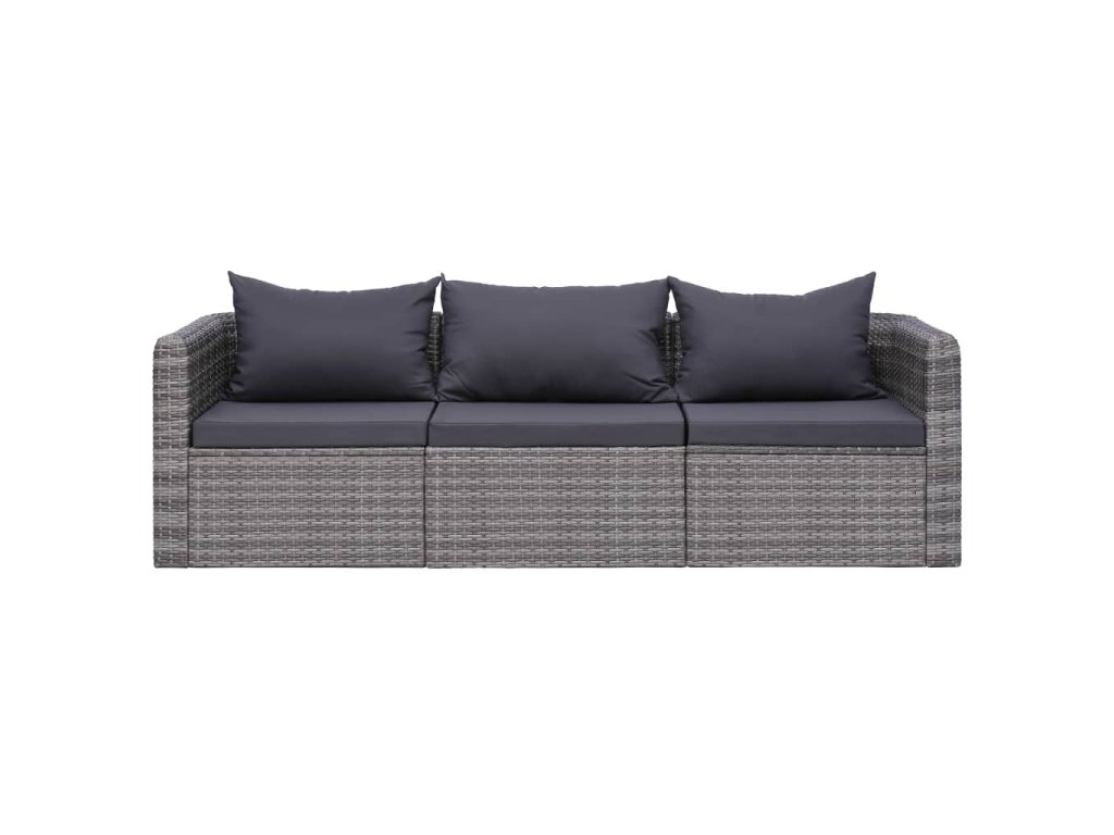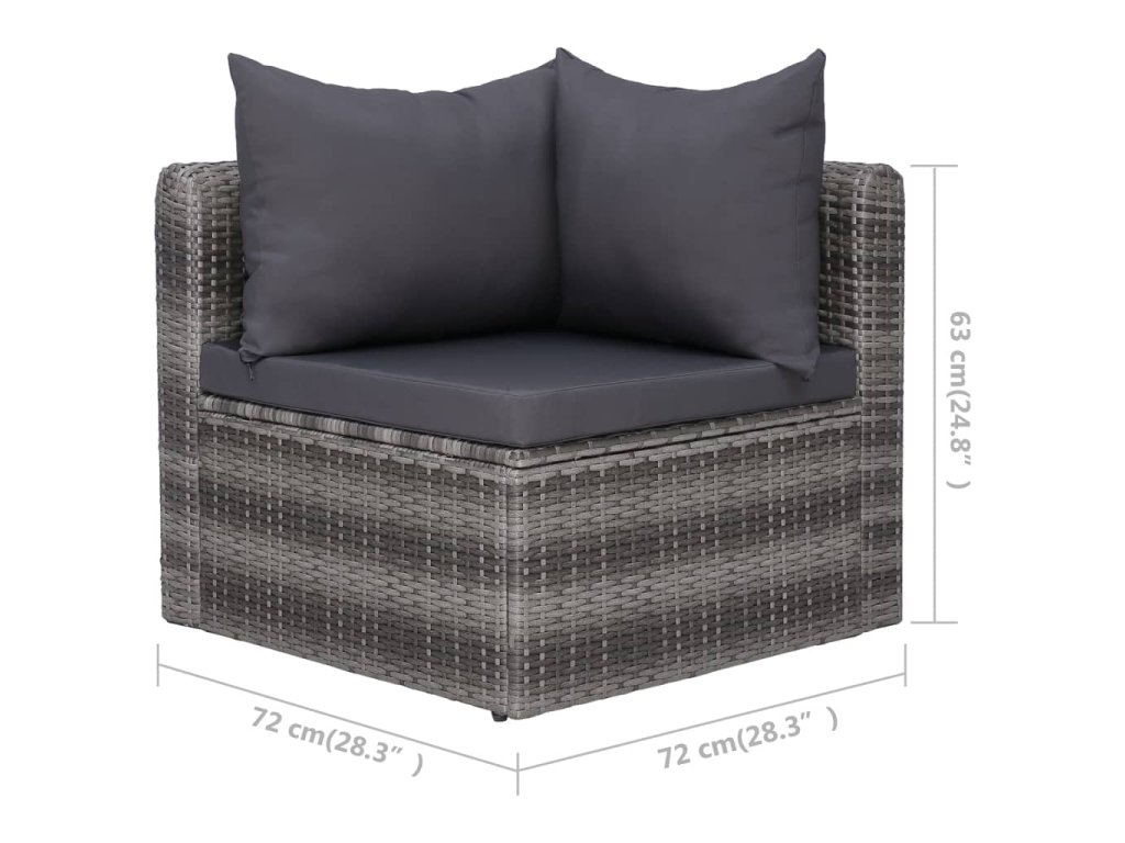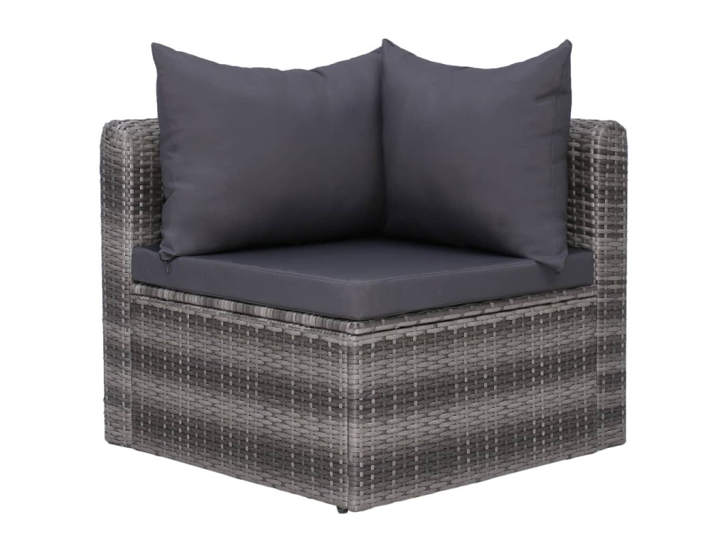 Balení obsahuje 1 levou rohovou pohovku, 1 pravou rohovou pohovku, 1 střední pohovku, 3 podušky na sedáky a 3 polštáře za záda. Poznámka: Doporučujeme vám soupravu za deště, sněhu a mrazu přikrýt.