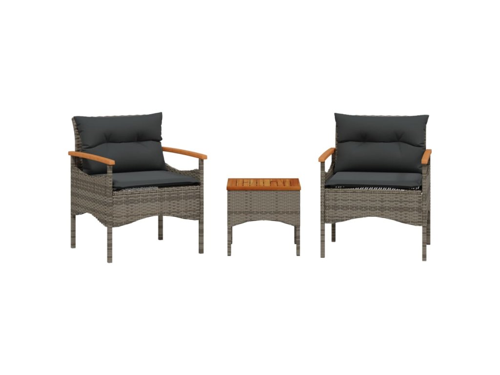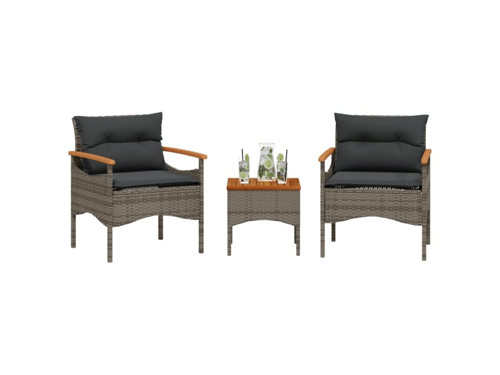 - Materiál: PE ratan, práškově lakovaná ocel, masivní akáciové dřevo s olejovou povrchovou úpravou