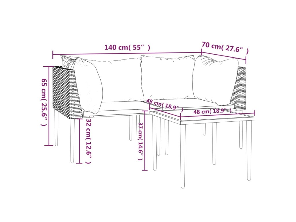 - Pohodlné sezení: Jelikož je vybavena silně polstrovanými poduškami na sedák a opěradlo, je tento venkovní sedací souprava mimořádně pohodlná.