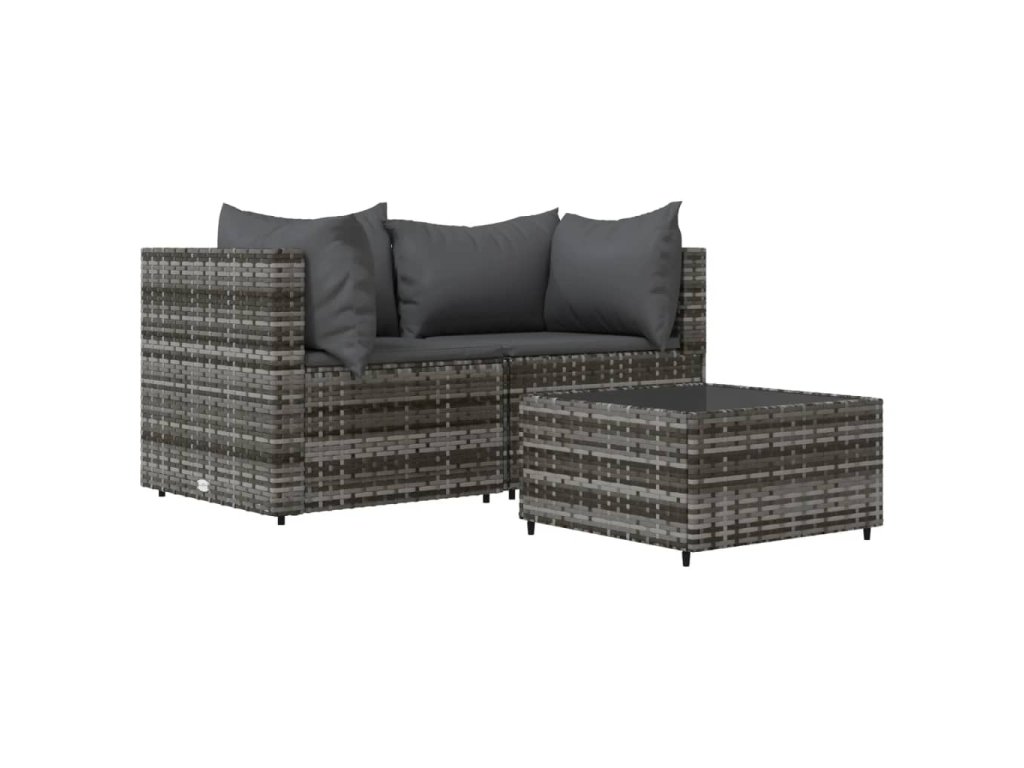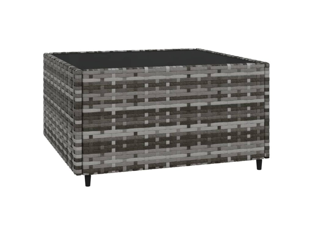 - Materiál: PE ratan, práškově lakovaná ocel, tkanina (100% polyester), tvrzené sklo