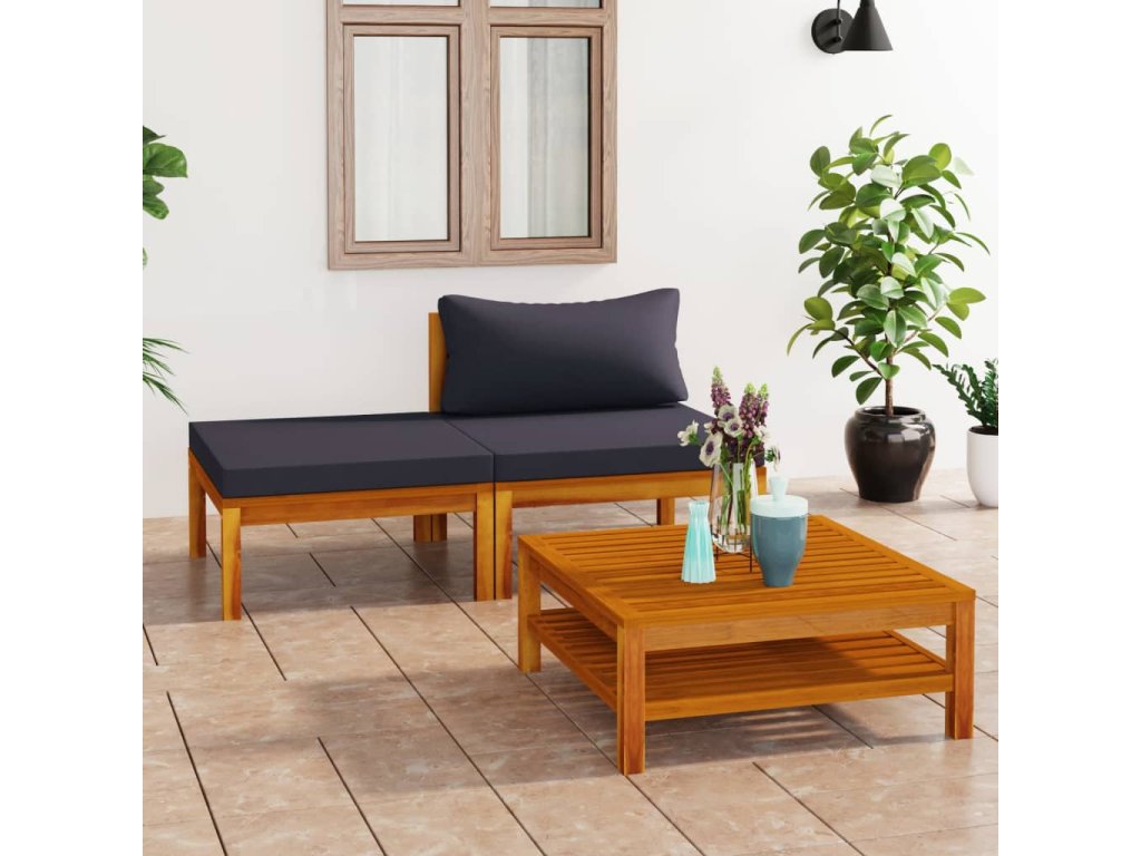 Sada je vyrobená z masivní akácie, tropického tvrdého dřeva s vysokou odolností proti klimatickým vlivům a velmi dlouhou životností. Nábytek na terasu je napuštěný olejem, takže získal teplou barvu, snadno se čistí a udržuje. Na konferenční stolek si můžete v dosahu ruky odkládat občerstvení, nápoje nebo časopisy atd. Souprava navíc obsahuje silně polstrované podušky na sedák a opěradlo pro maximální pohodlí při sezení. Tuto sadu můžete kombinovat s dalšími produkty z naší nabídky a sestavit si tak vlastní sedací soupravu.