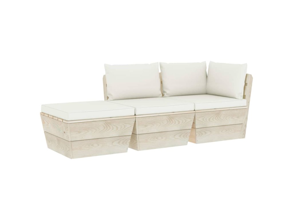 Zahradní sedací souprava je vyrobená z impregnovaného smrkového dřeva, takže je velice odolná a stabilní. Má pevnou konstrukci a nevyžaduje téměř žádnou údržbu. Podušky na paletový nábytek jsou čalouněné 100% polyesterem a hustě polstrované, takže jsou nesmírně měkké a zajistí vám maximální pohodlí. Zahradní pohovky mají modulární design, a tak je můžete přizpůsobit každému prostředí dle svých představ.