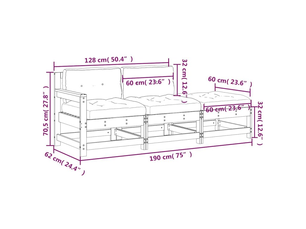 - Rozměry středové pohovky: 62 x 62 x 70,5 cm (D x Š x V)