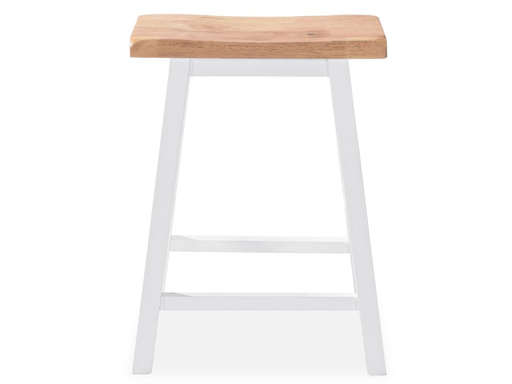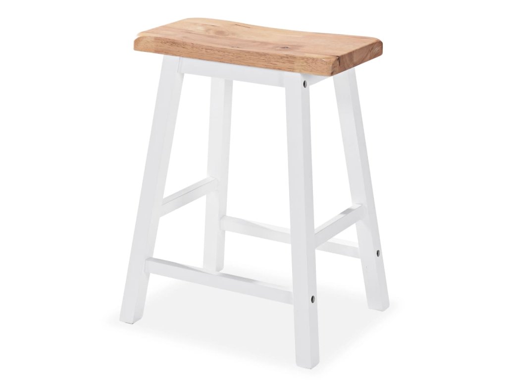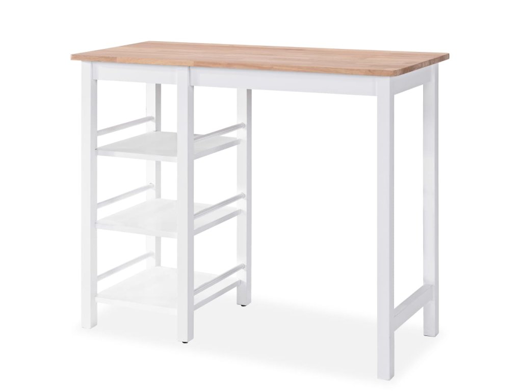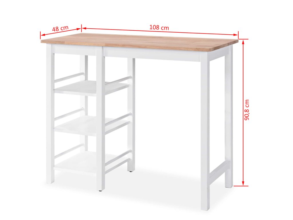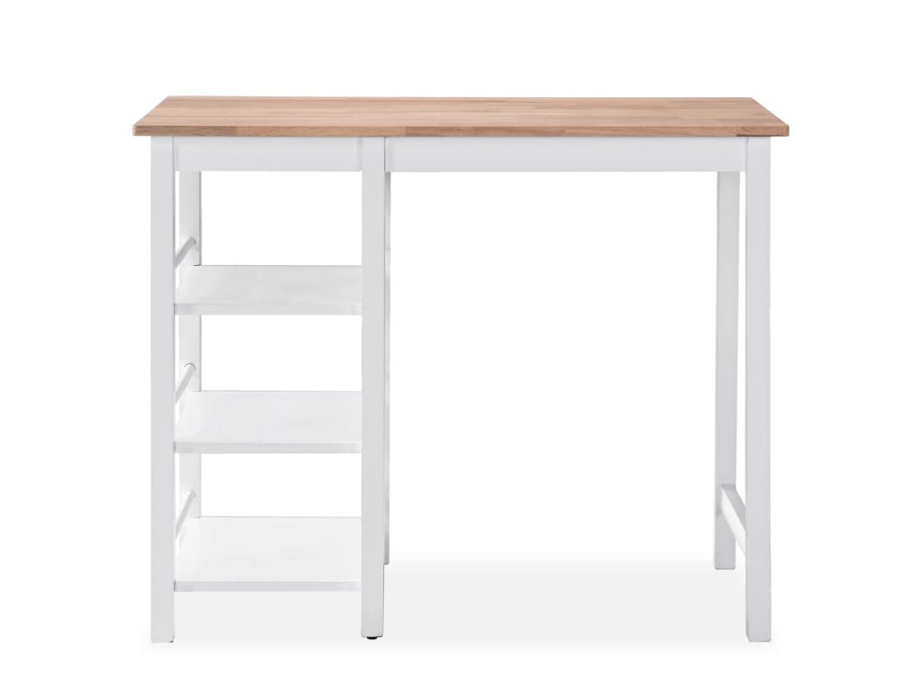 Sada je vyrobená z MDF a pevných nohou z kaučukovníkového dřeva. Osmirkovaný masiv rámů nábytku se chlubí bílým nátěrem, zatímco sedadla a deska stolu byly naolejovány tak, aby vynikla krásná teplá barva dřeva. Kontrast v barvách jen podtrhuje jednoduchý, stylový vzhled soupravy. Barový stolek je prostorný a disponuje třemi poličkami po straně, na které si můžete položit potřebné kuchyňské vybavení a další předměty, které chcete mít po ruce. Stoličky se pak pyšní velkými, ergonomicky tvarovanými sedáky.