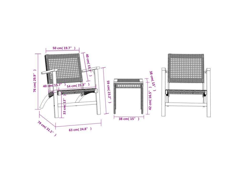 - Materiál: PE ratan, práškově lakovaná ocel, masivní akáciové dřevo s olejovou povrchovou úpravou