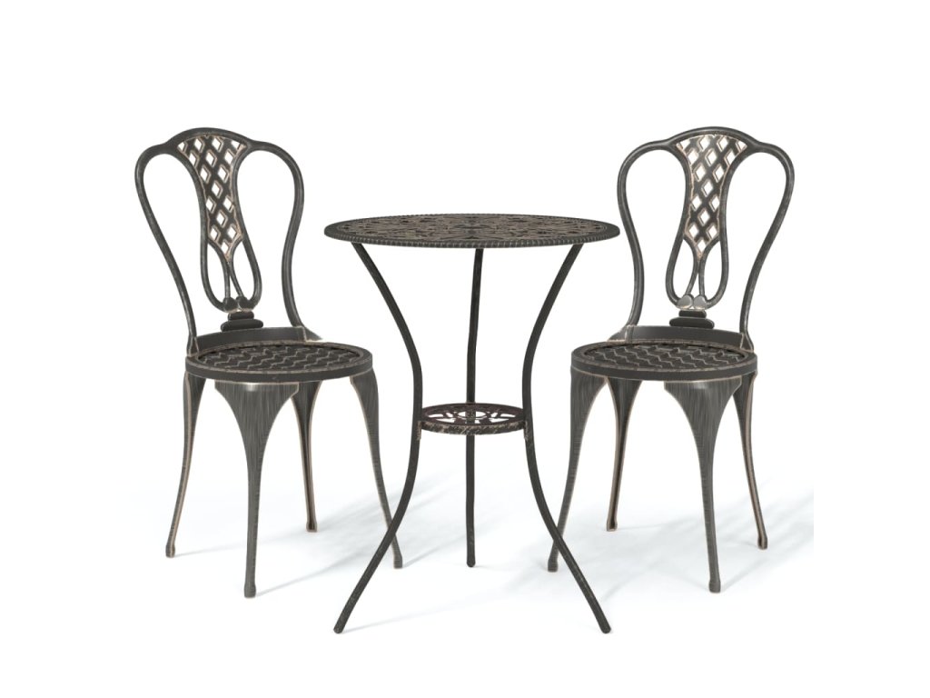 Bistro set je vyrobený z litého hliníku, který je odolný vůči povětrnostním vlivům a má dlouhou životnost. Do detailu propracovaný květinový vzor oživí každou zahradu, terasu či zimní zahradu romantickým nádechem.