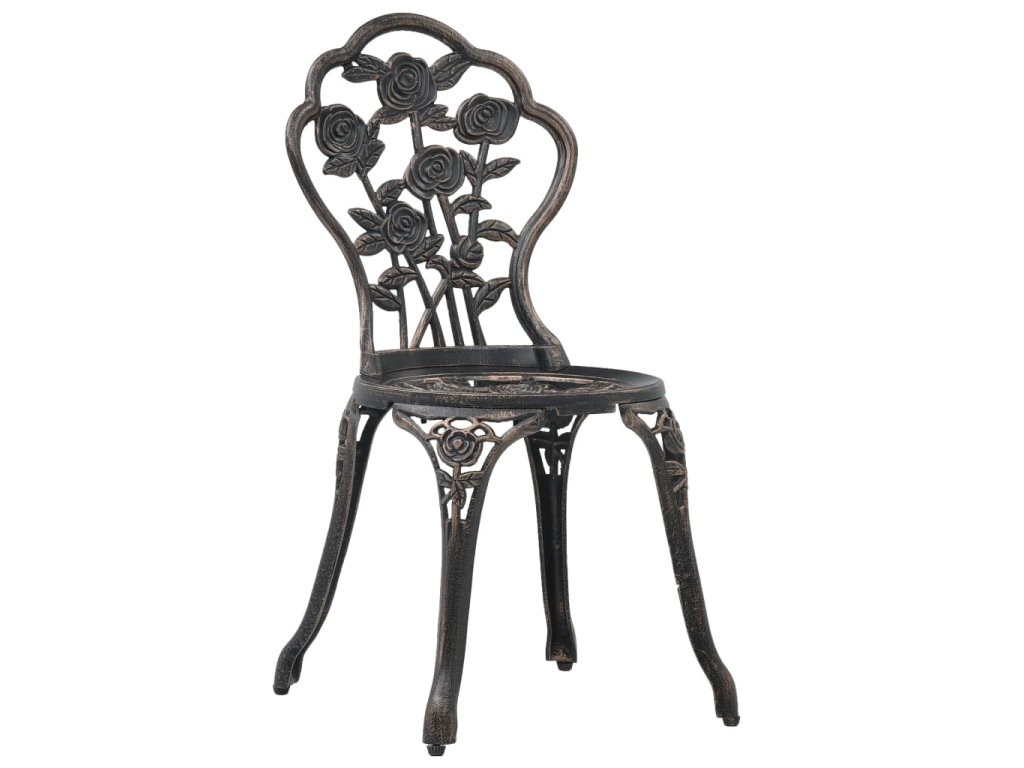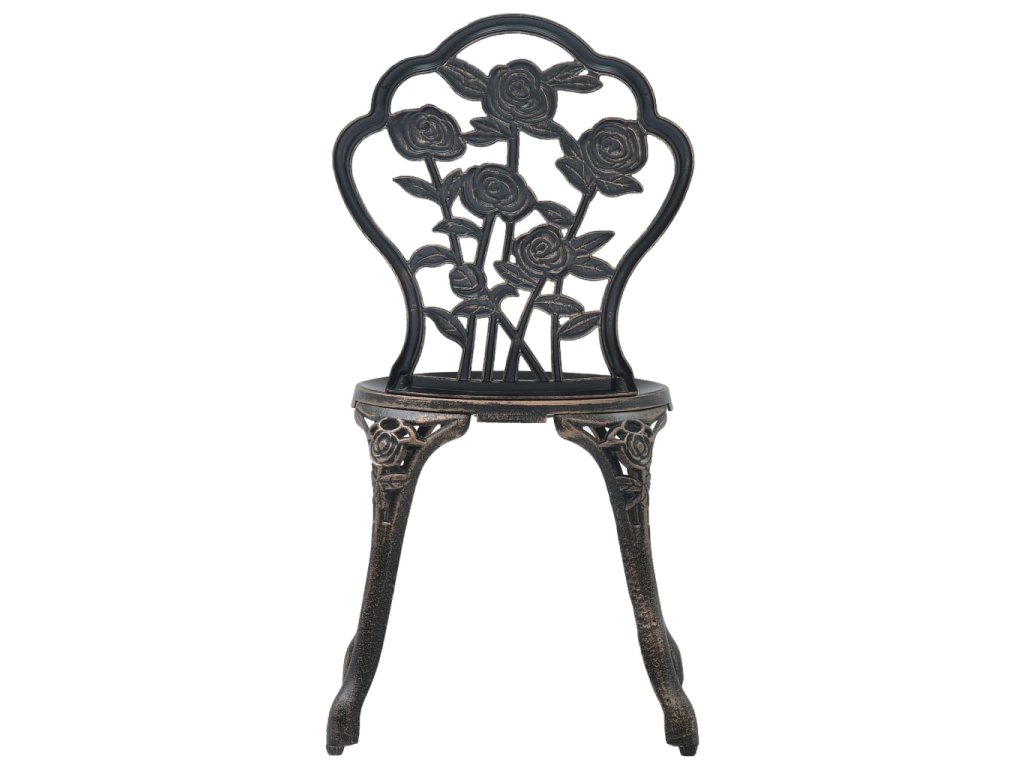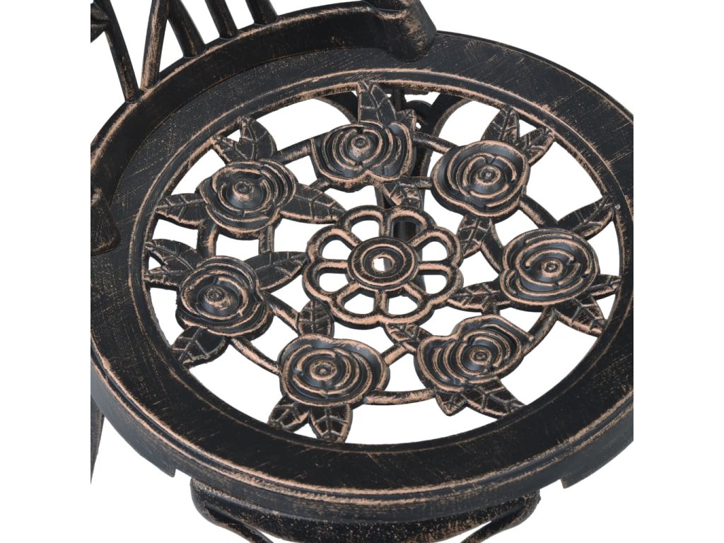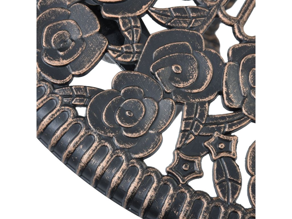 Zahradní stolek a židle jsou vyrobené z vysoce odolného litého hliníku, který je odolný vůči povětrnostním vlivům a má dlouhou životnost. Litinové nohy dodávají nábytku na robustnosti. Do detailu propracovaný květinový vzor oživí každou zahradu, dvůr či zimní zahradu romantickým nádechem.